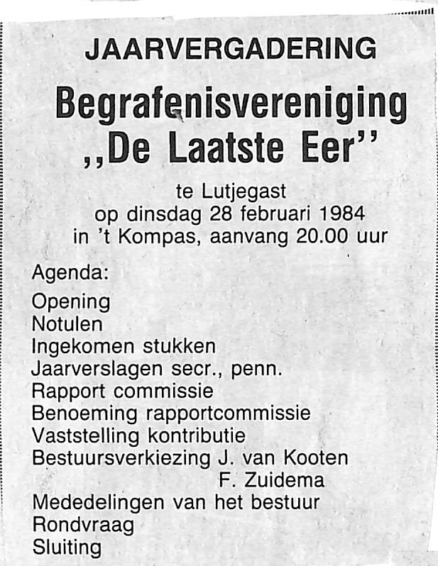 advertentie jaarvergadering begravenisvereniging ,,De Laatste Eer"