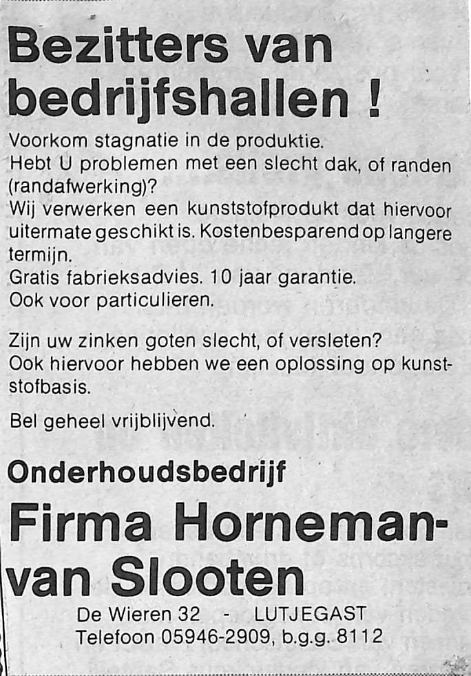 advertentie onderhoudsbedrijf Firma Horneman-van Sloten