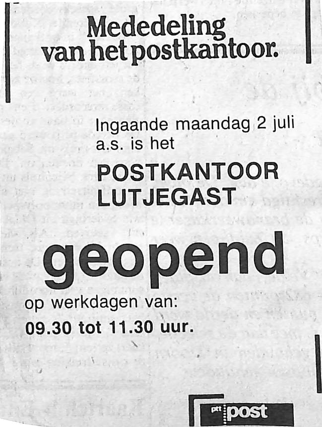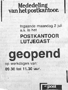 openingstijden postkantoor lutjegast