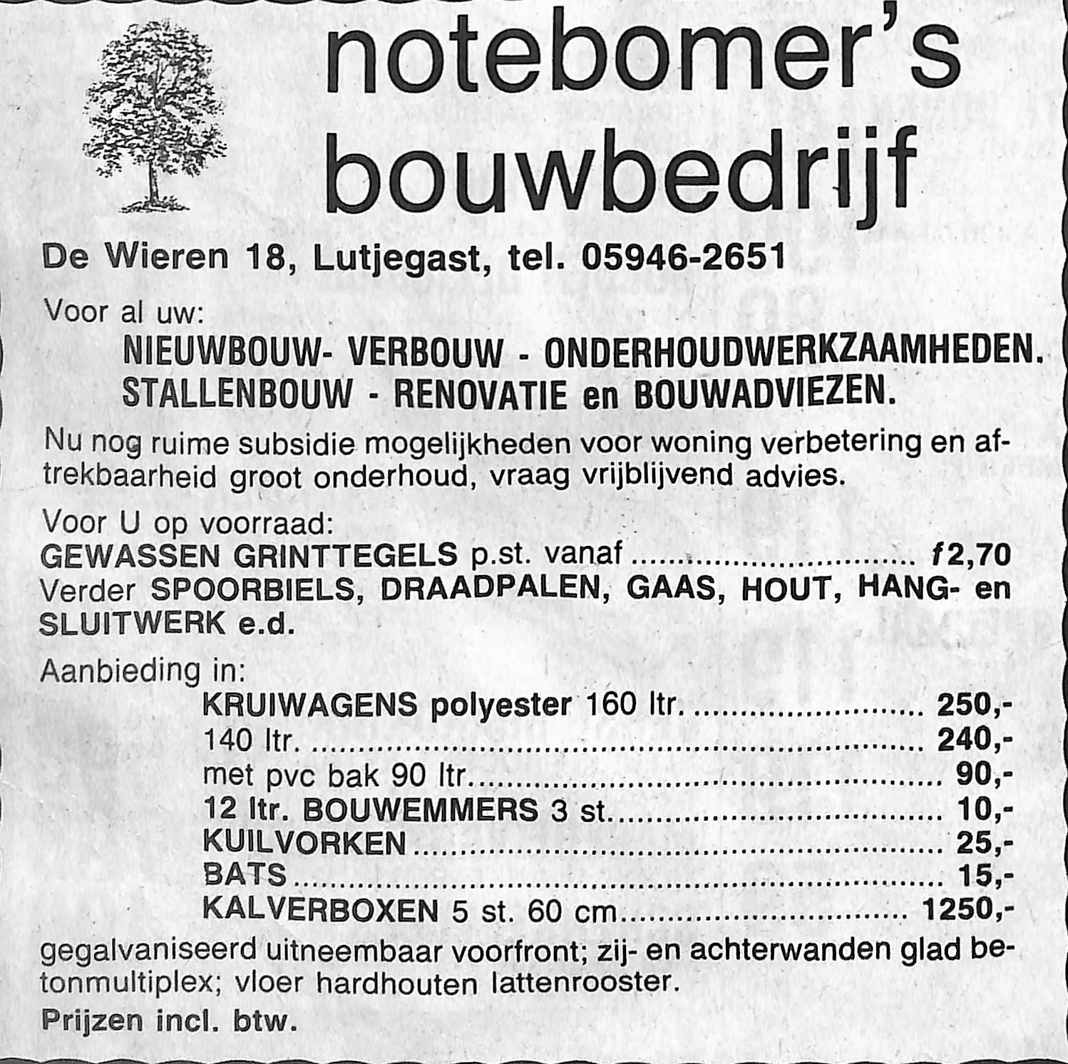 advertentie Notebomers bouwbedrijf.