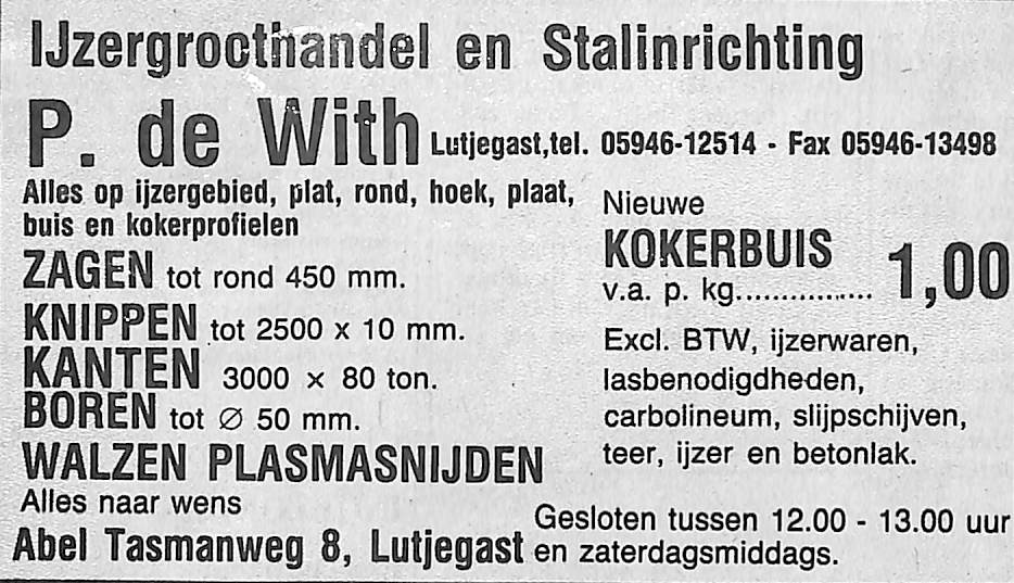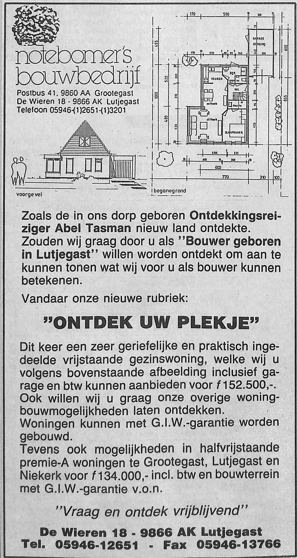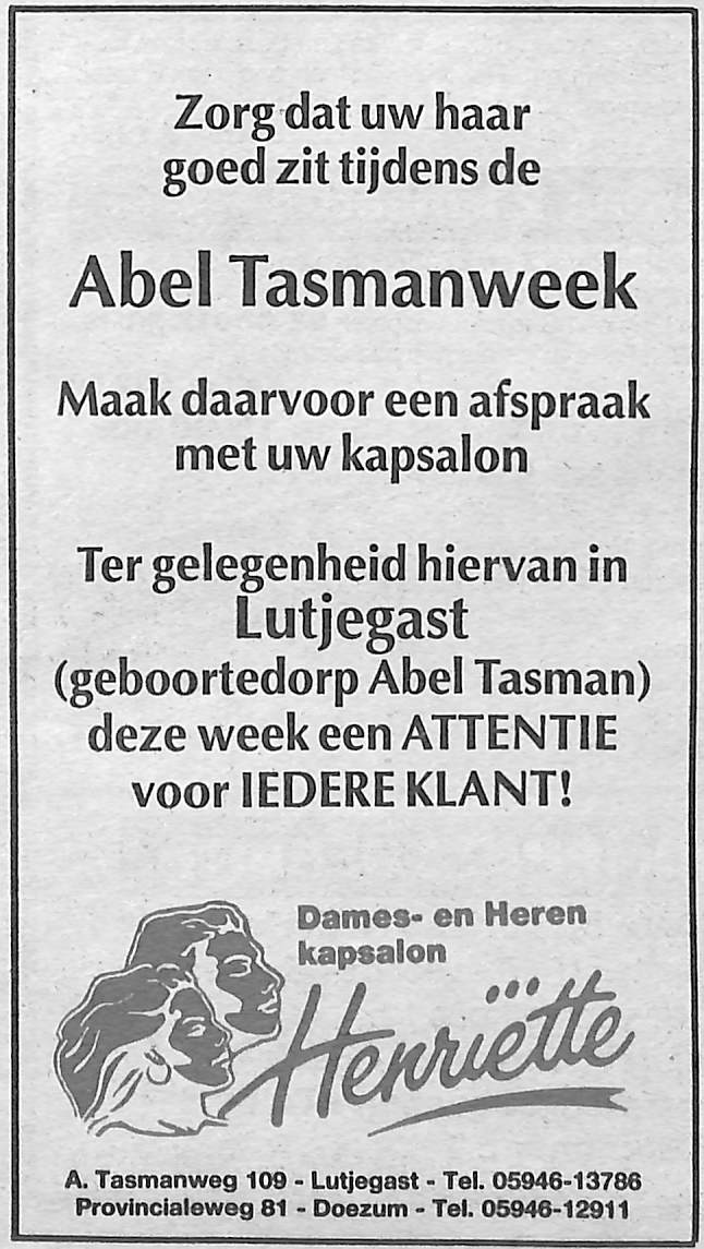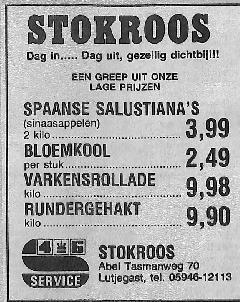 4 waardebonnen van 15,- gulden beschikbaar door de handelsvereniging van Lutjegast en Doezum, bedrijven die meedoen, Stokroos, J.v.d. Molen, Notebomer, Gjaltema, Dijkstra, Top, Oldenburger, Snip, Henriette , Schreiber en winnaars vorige keer,