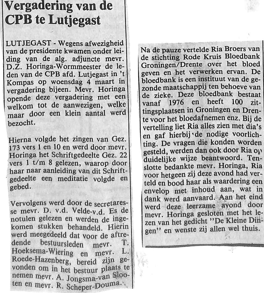 D.Z. Horinga-Wormmeester, D. vd.d. Velde-vd.d. Es, T. Hoeksema-Wiering L. Roede-Hazenberg, A. Jongsma-van Slooten, R. Scheper-Douma, Ria Broers van de Bloedbank Groningen