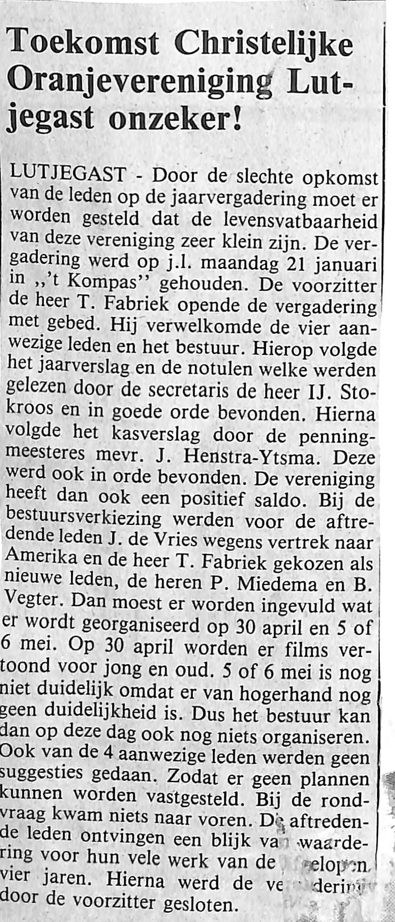 DE toekomst van de Chr. Oranjevereniging blijft van wege gebrek aan ;leden onzeker.