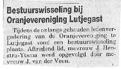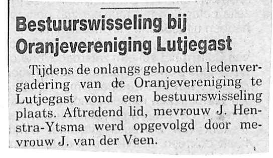 bestuurswisseling bij Oranjevereniging Lutjegast; J. Henstra-Ytsma, J van de Veen