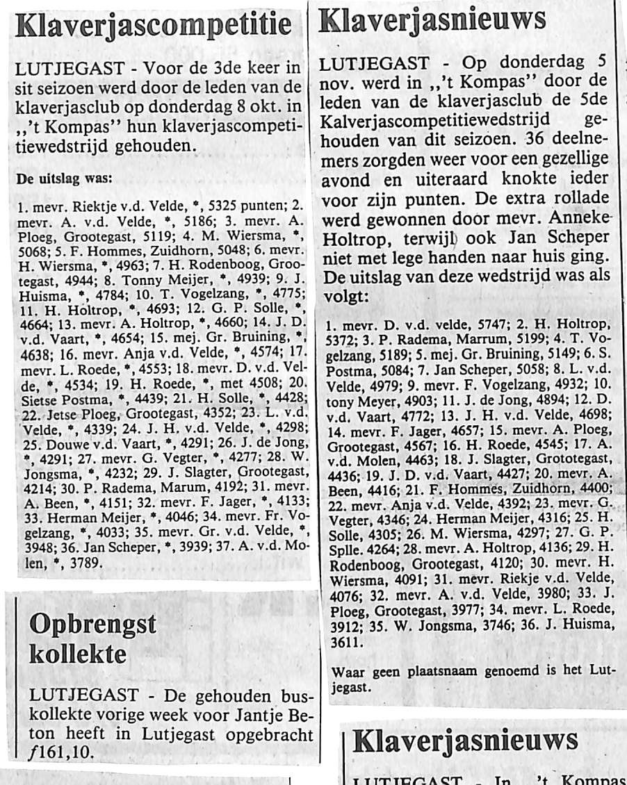 Uitslagen klaverjassen