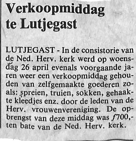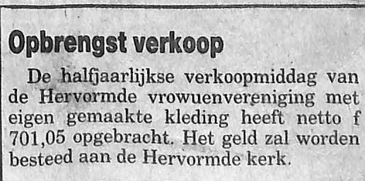 verkoopmiddag Hervormde vrouwenvereniging