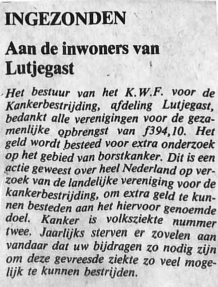 Opbrengst collecte K.W.F.
