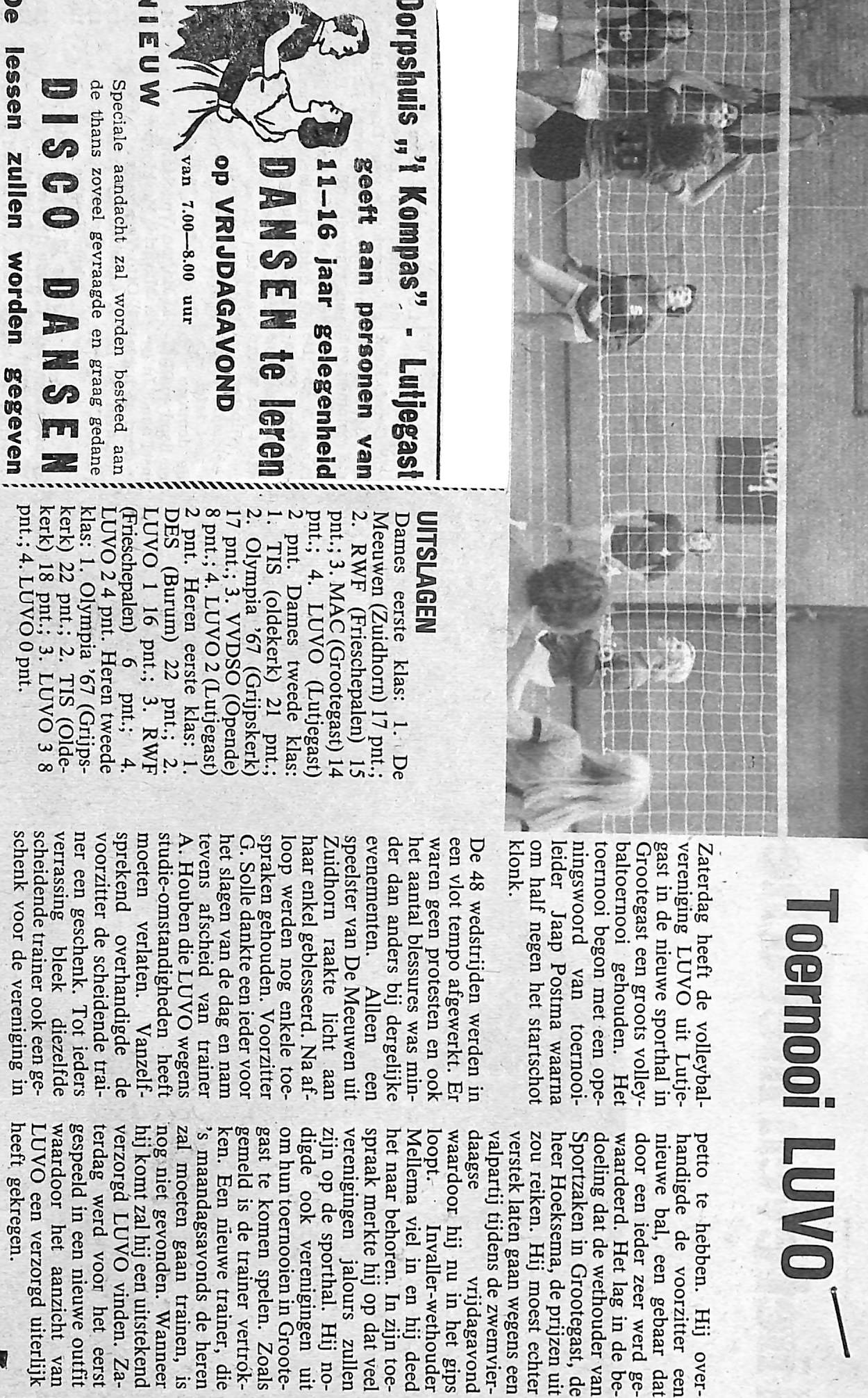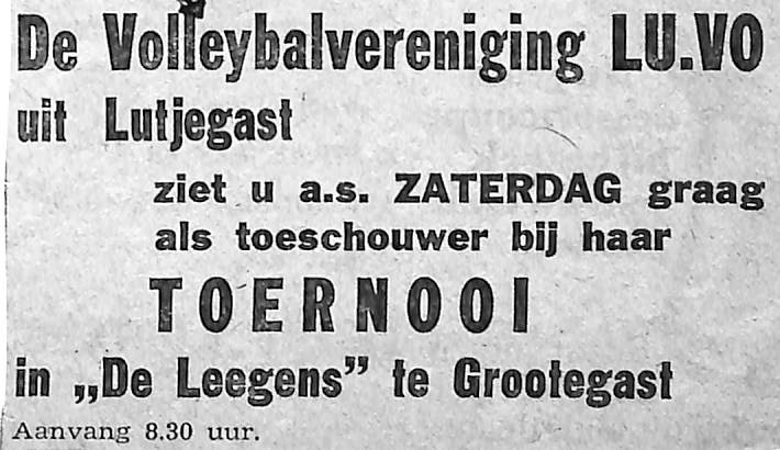 volleybalvereniging LUVO hield een groots volleybalwedstrijd in Grotegast; Jaap Postma, G. Solle, A. Houben, Hoeksema, Mellema,