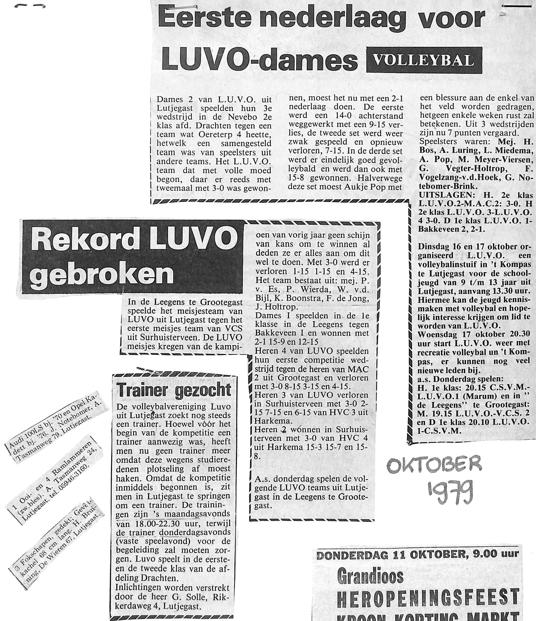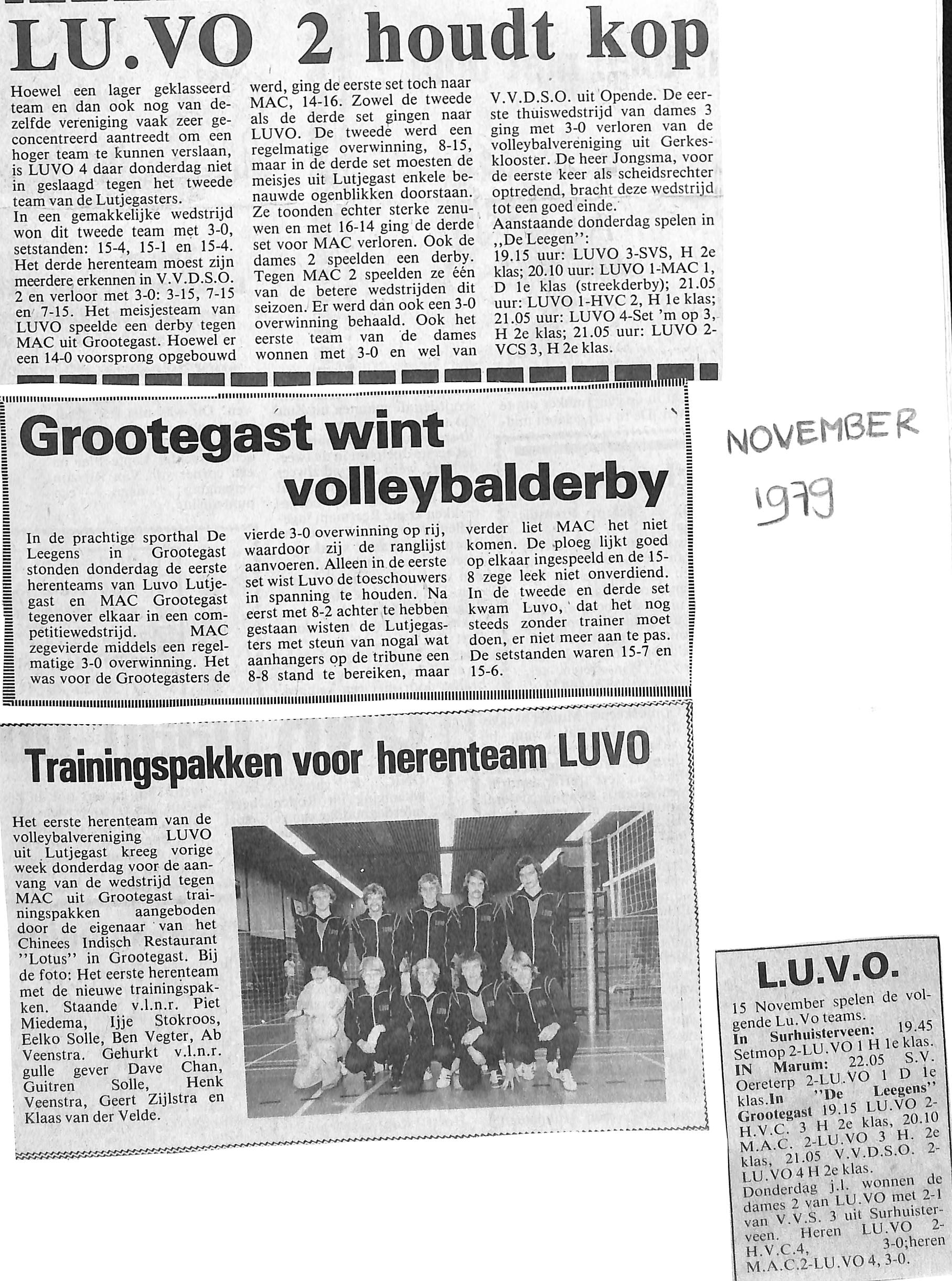 het herenteam van LUVO kreeg nieuwe trainingspakken; piet Miedema, Ijje Stokroos, Eelko Solle, Ben Vegter, Ab Veenstra, Dave Chan, Guiteren, Solle, Henk Veenstra, Geert Zijlstra, Klaas v/d Velde