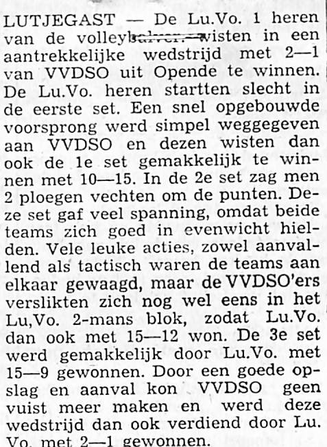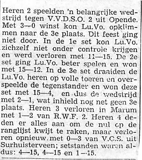 uitslagen volleybalwedstrijd van Lu.Vo
