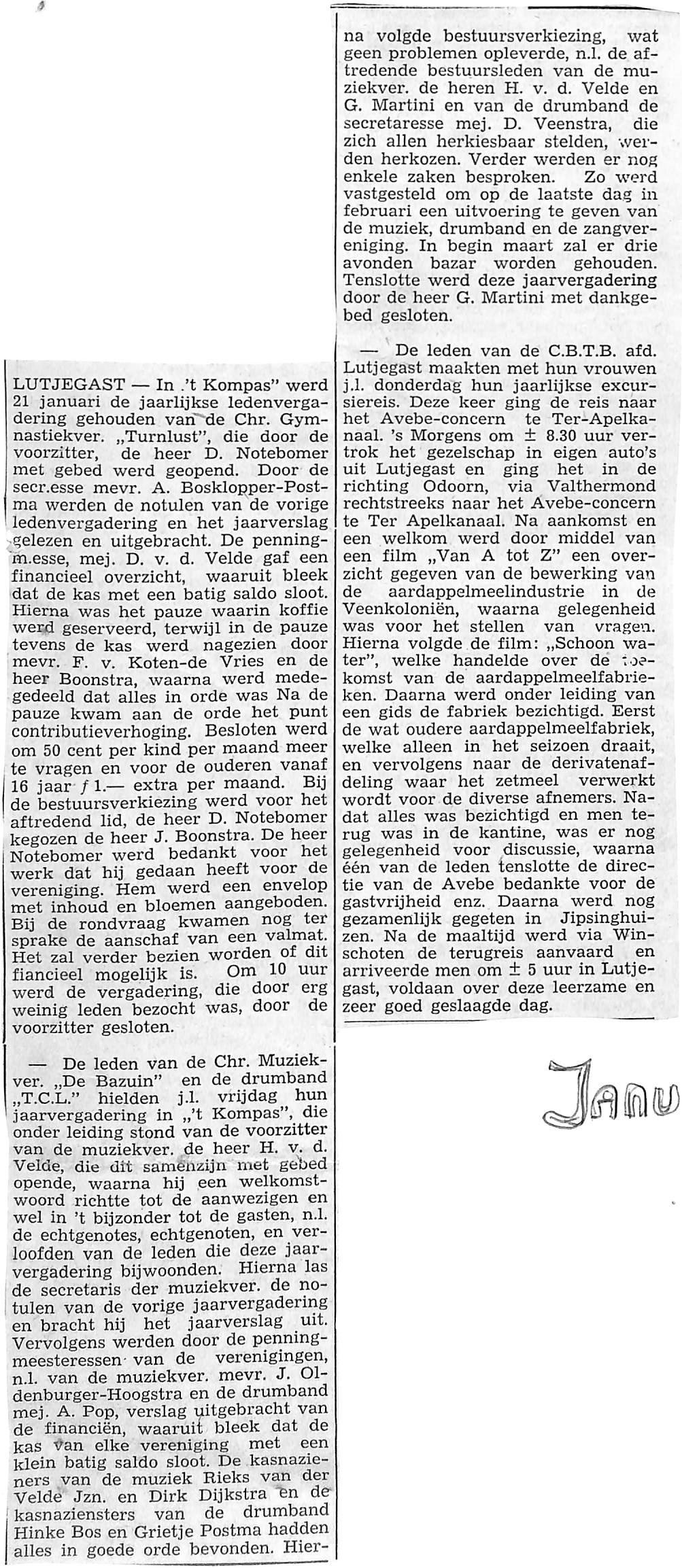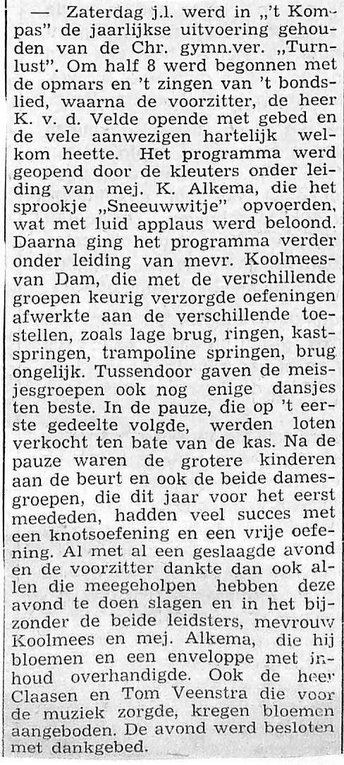 ledenvergadering van de Chr. gymnastiekvereniging ,,Turnlust"