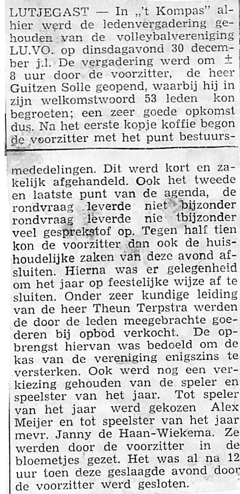 ledenvergadering volleybalvereniging LUVO; Guitzen Solle, Theun Terpstra, Alex Meijer, Janny de Haan-Wiekema