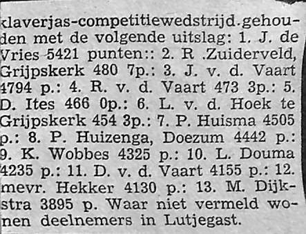 J, DE vries, R. zuiderveld, J. V.D. vaart, D.Ites, L. v. d. Hoek, P. Huisma, P. Huizenga, K. Wobbes, L. Douma, D. v.d. Vaart, mevbr, Hekker, M. Dijkstra