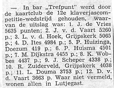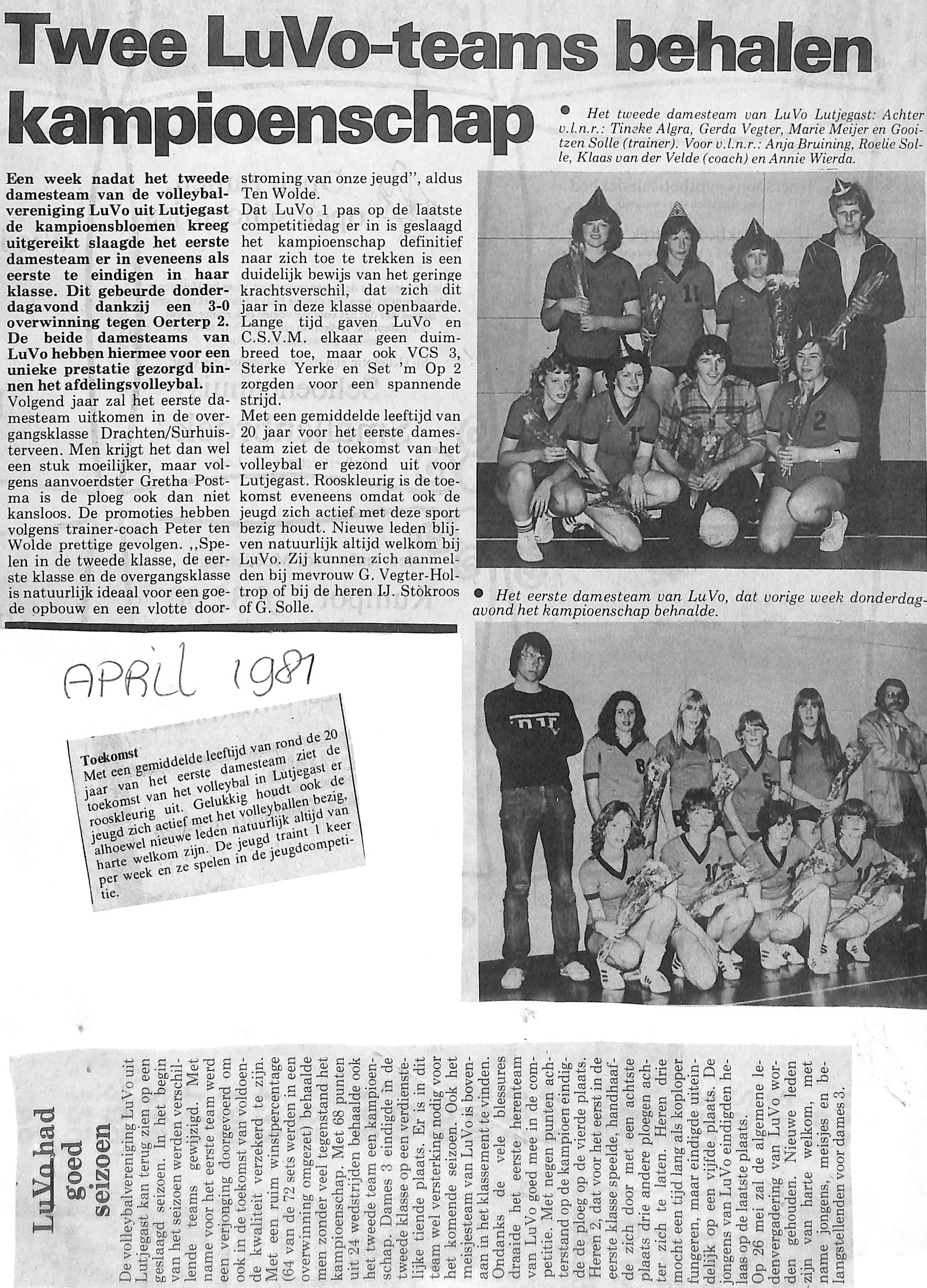 twee LUVO teams behalen het kampioenschap; Gretha Postma, Peter ten Wolde, G. Vegter Holtrop, IJ. Stokroos, G. Solle