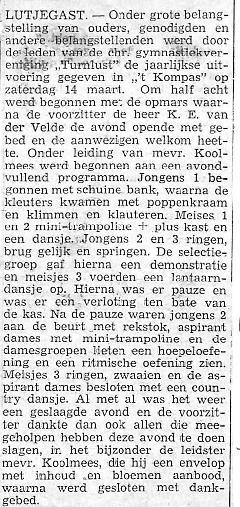 Turnlust gaf jaarlijkse uitvoering, K.E. van der Velde, Mevr. Koolmees,