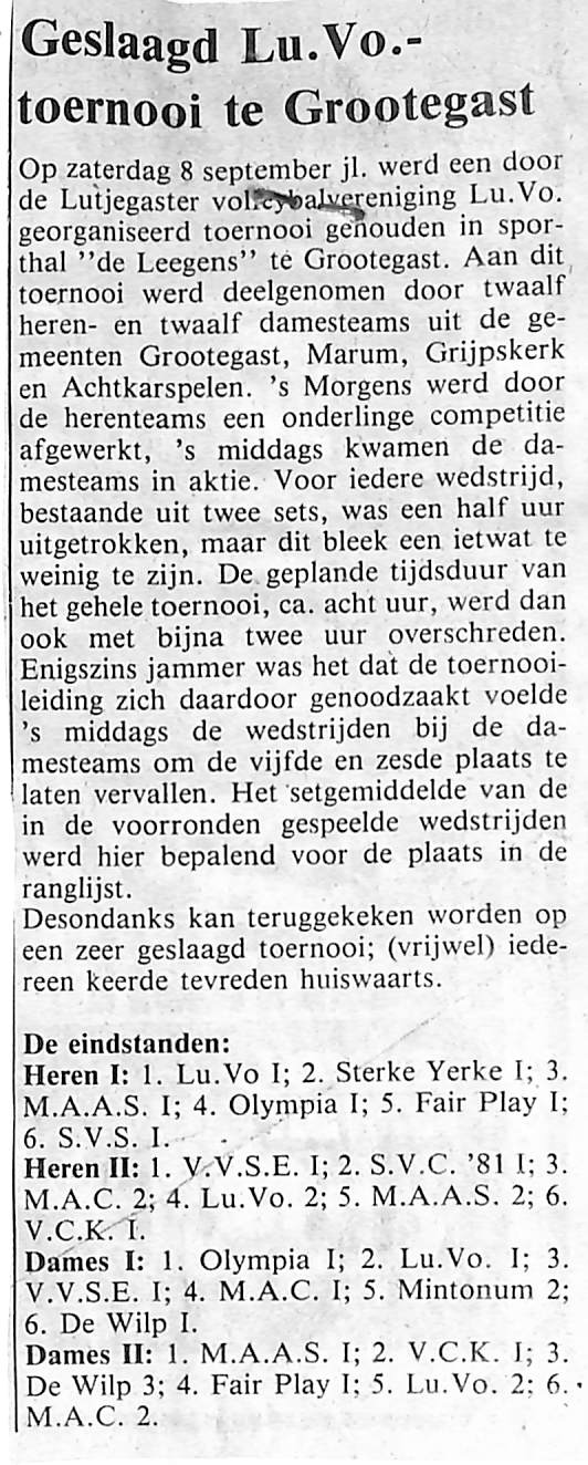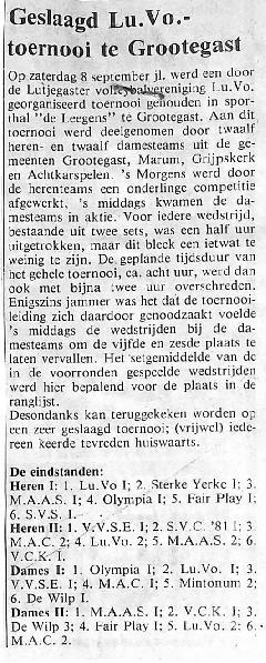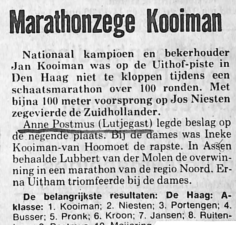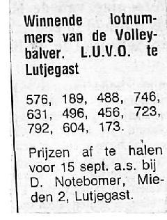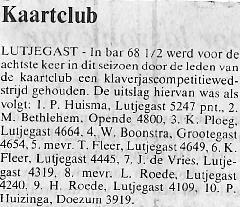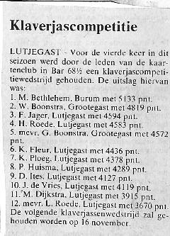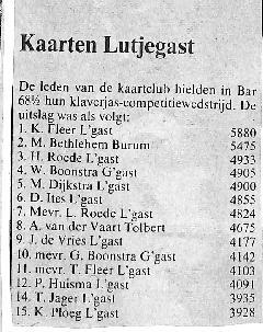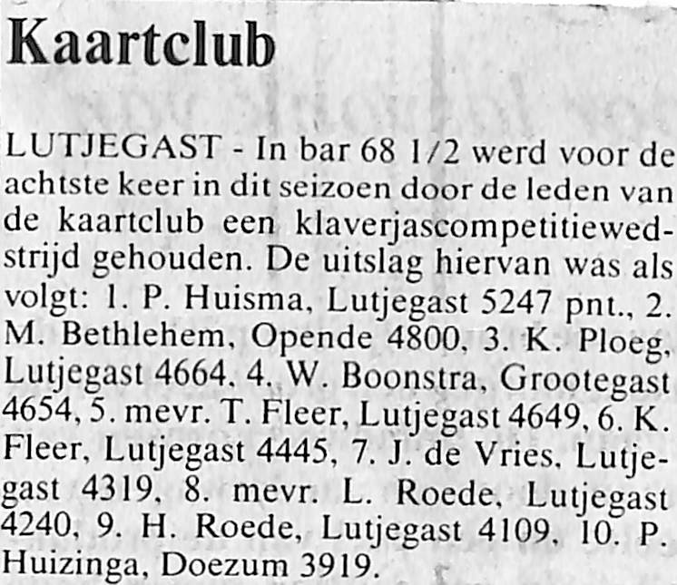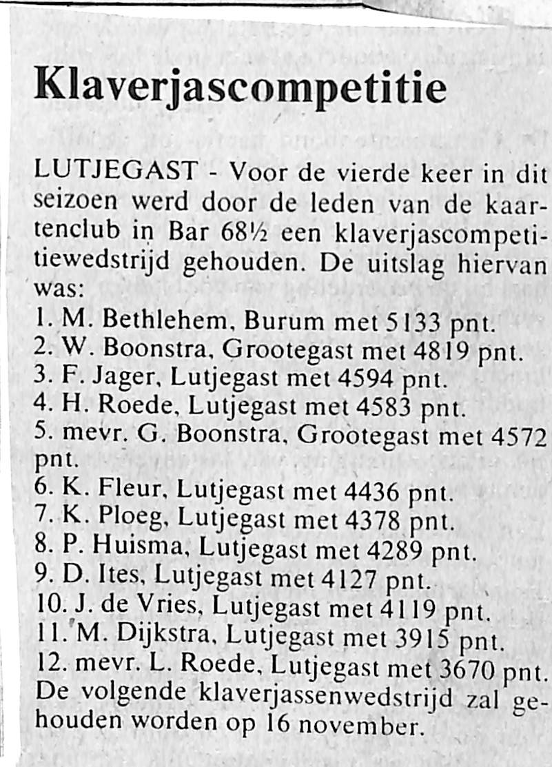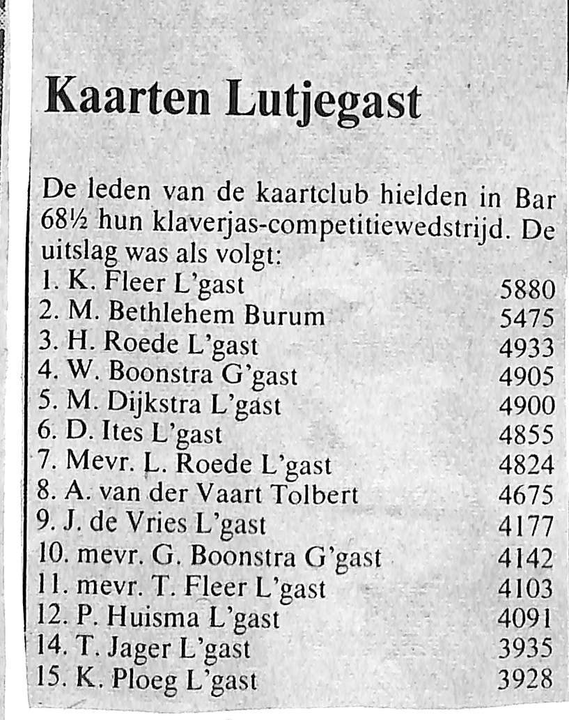Uitslag: M. Bethlehem, W. Boonstra, F. Jager, H. Roede, G. Boonstra, K. Fleur, K. Ploeg, P. Huisma, D. Ites, J. de Vries. M. Dijkstra, L. Roede