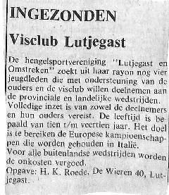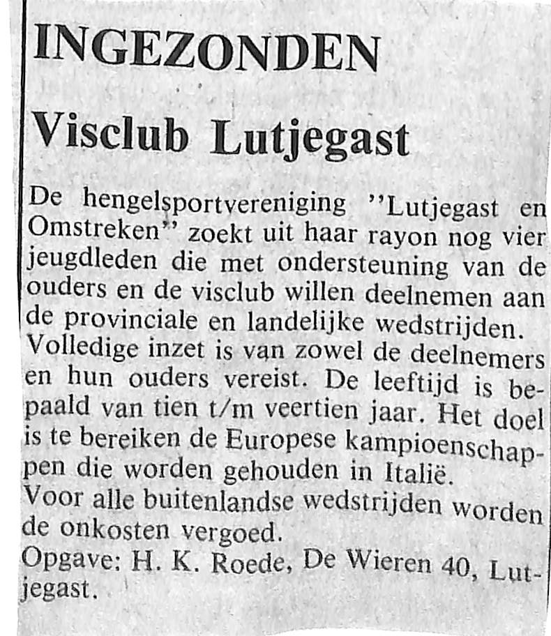 De visclub zoekt vier leden die samen met anderen naar de provinciale en landelijke wedstrijden wil.