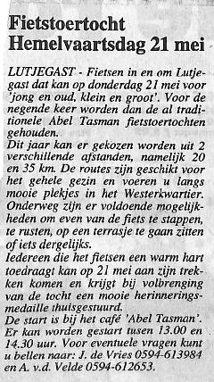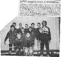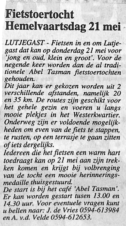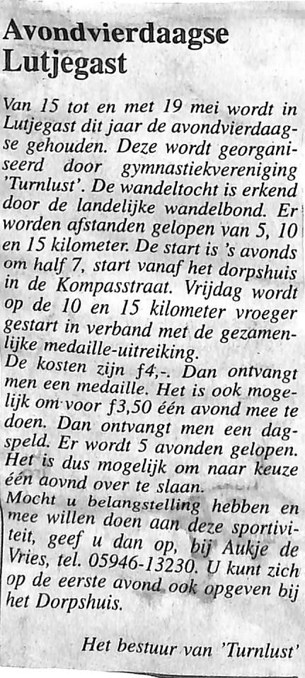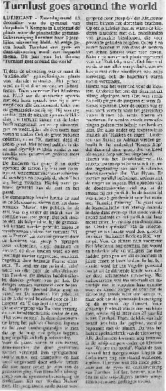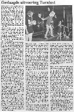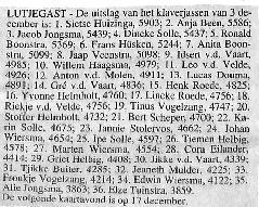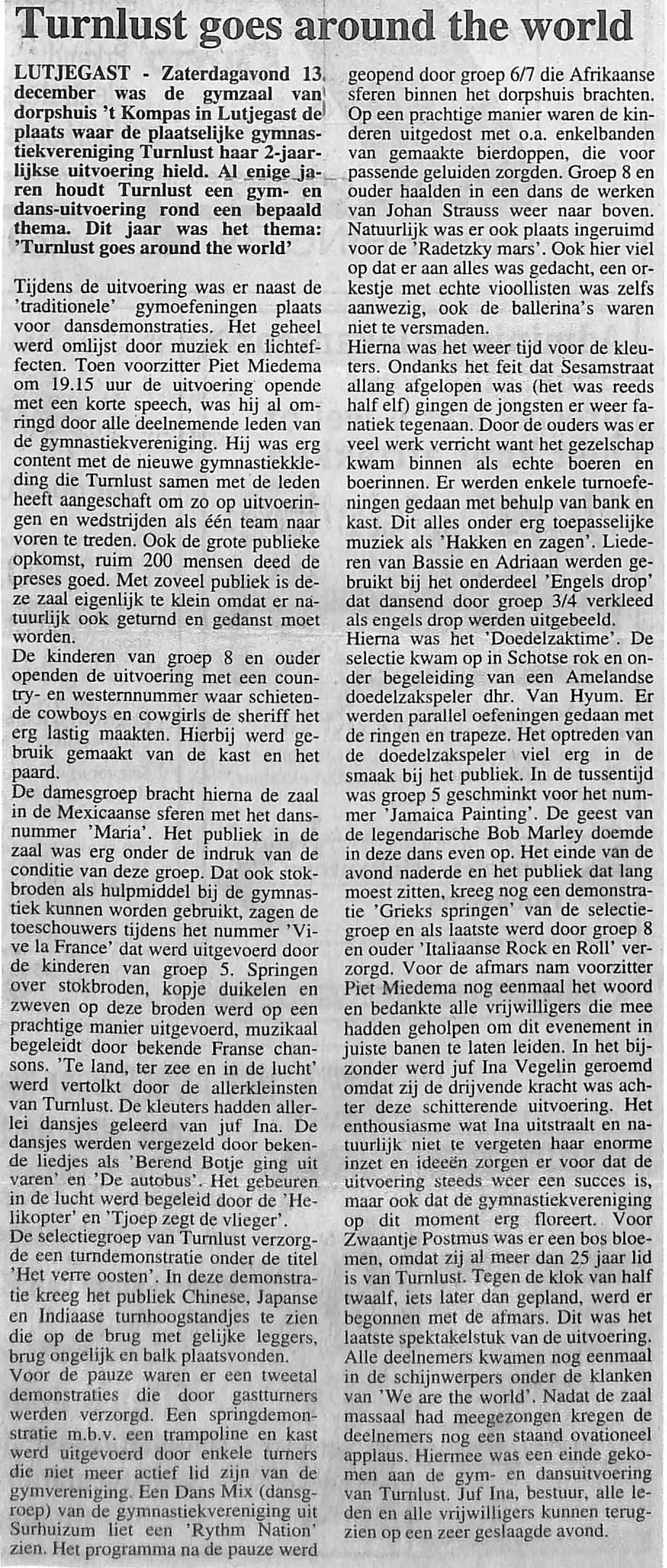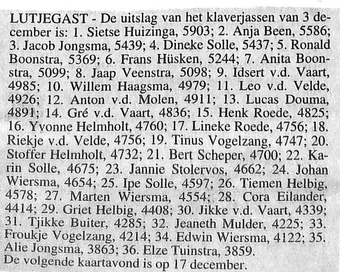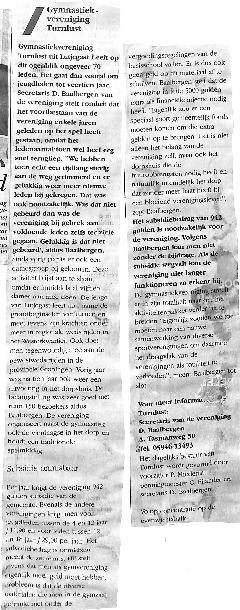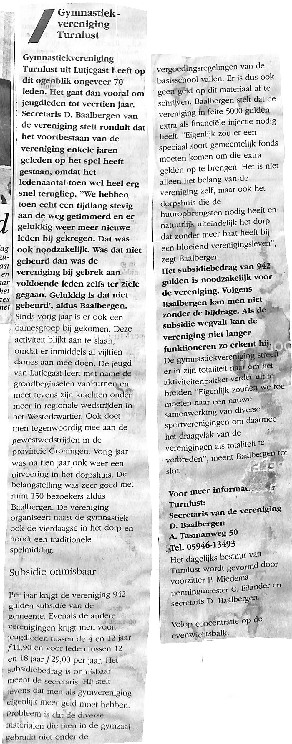 uitslag gymnastiekwedstrijd; Bedine Pera, Froukje Visser, Marleen Fleer, Adrianne Scheiber, Ineke Holtrop, Erik v/d Veen, Bettina Drenth, Anjetta Binjaris, Leonie Veenstra, Regine Miedema, Gertine Veenstra, Nienke Drost, Reinier Veenstra, Nathalie Haanstra, Marieke Brouwer, Richsje Tel, Hilda de Vries, Jacoba de Boer, Albertus de Vries, Richard IJtsma, Theun Eilander, Arjen Bruggema, Jan Kloosterman, Manuela Haanstra, Adrea Bos, Titia Lieffering, Karin Blok