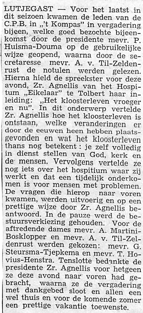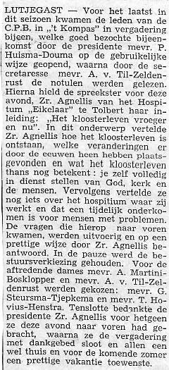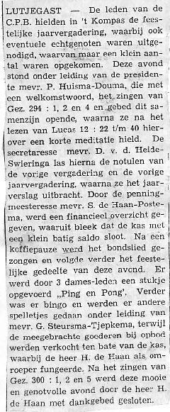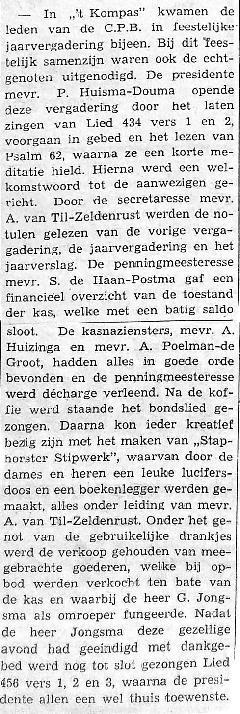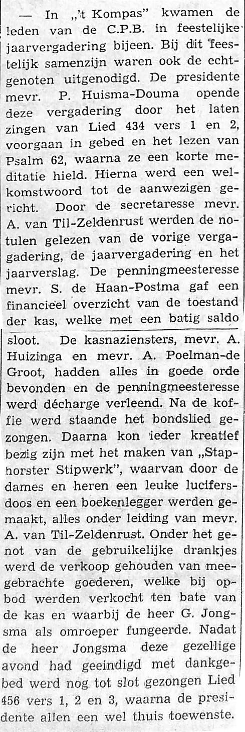 de leden van de C.P.B hielden een Feestelijke vergadering; P. Huisma-Douma, D v/d Heide-Swieringa, S. de Haan-Postema, G. Steursma-Tjepkema, H. de Haan