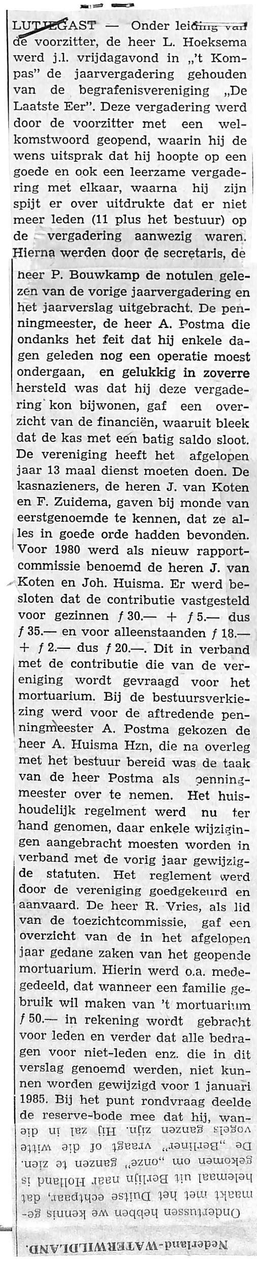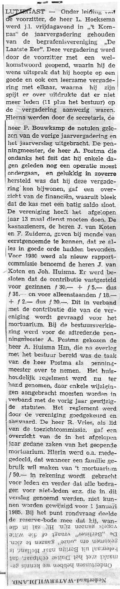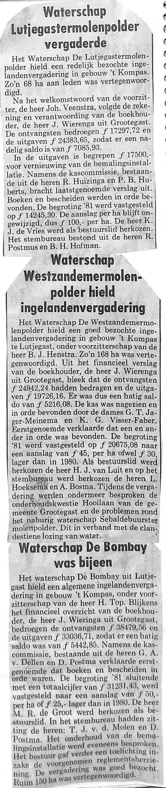 Algemene Vergadering Lutjegaster Molenpolder; J.P. Venema, J. Wiering, Joh. Veenstra,