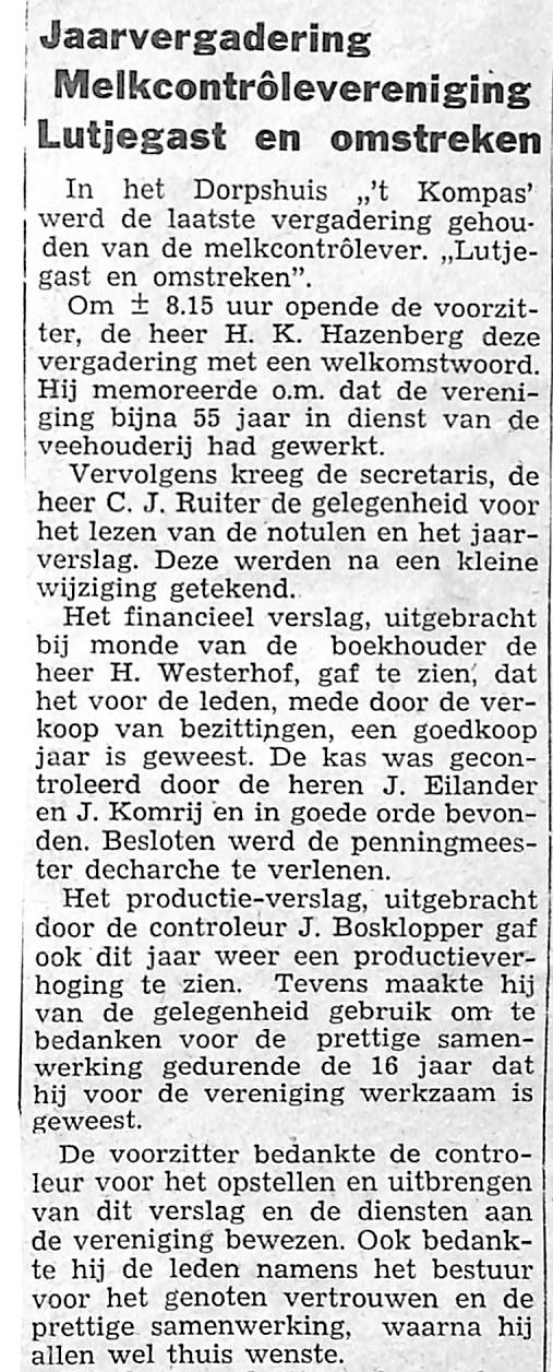 melkcontrolevereniging. H.K. Hazenberg, C.J. Ruiter, H. Westerhof, J. Eilander, J. Komrij, J. Bosklopper