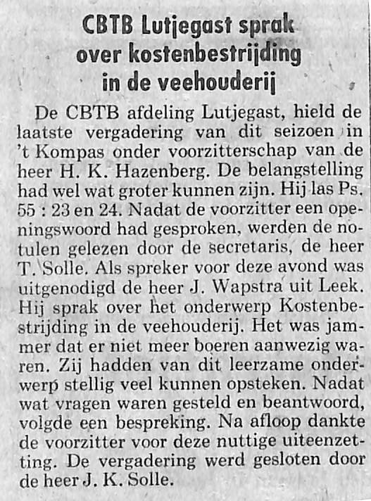 DE CBTB afdeling Lutjegast hield een vergadering; Hazenberg, Solle, Wapstra