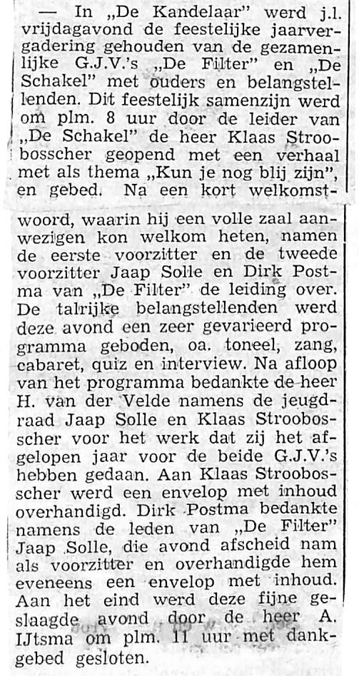 jaarvergadering G.V.J.'ers; Klaas Stroobosscher, Jaap Solle, Dirk Postma, H. v/d Velde, A. IJtsma