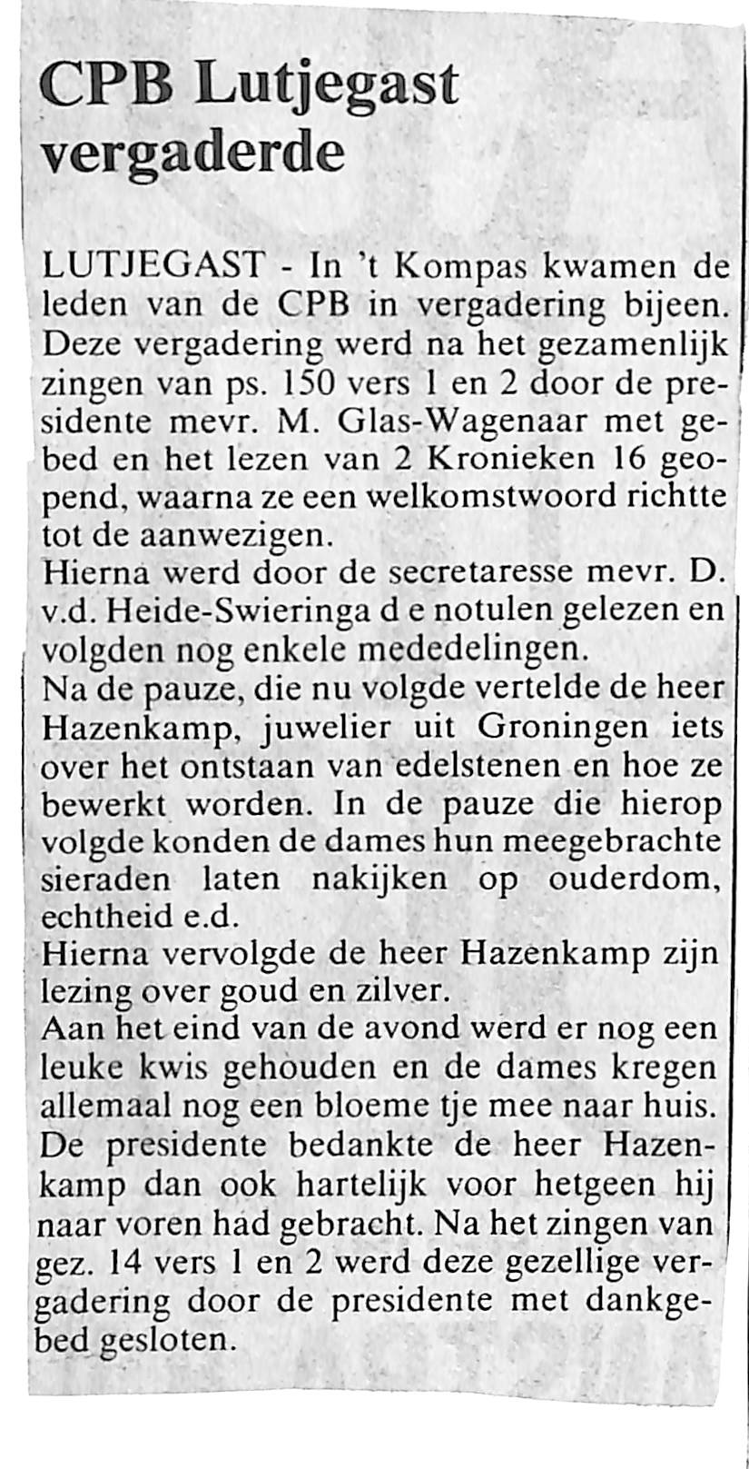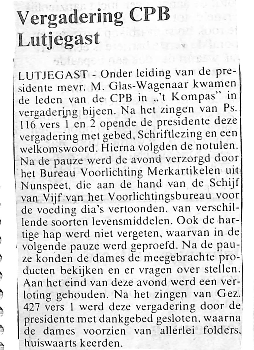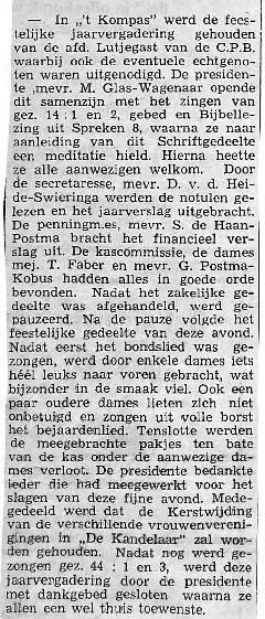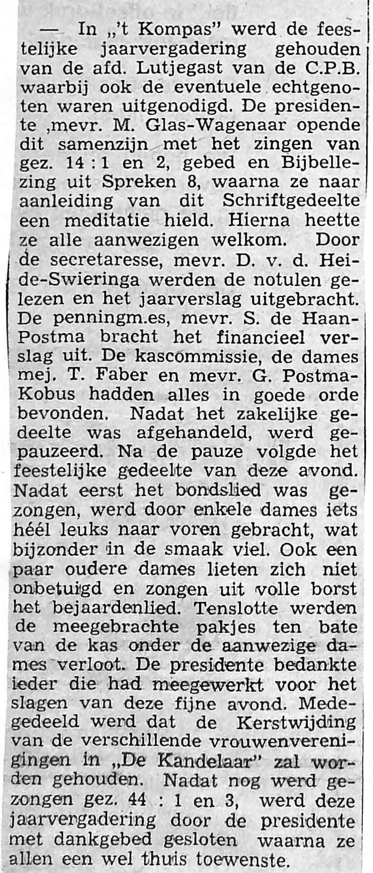jaarvergadering: M. Glas - Wagenaar, D. v.d. Heide