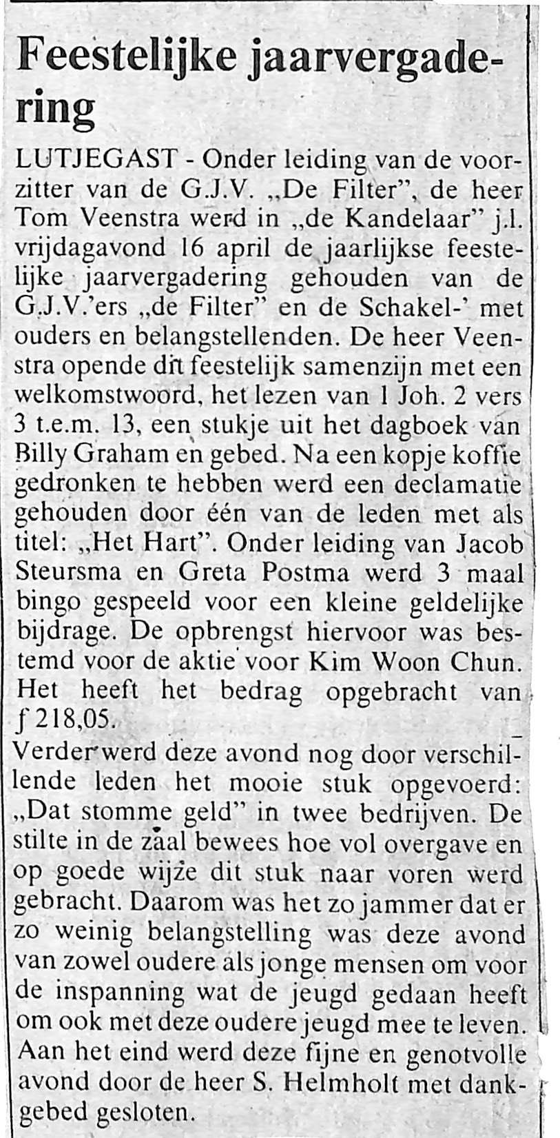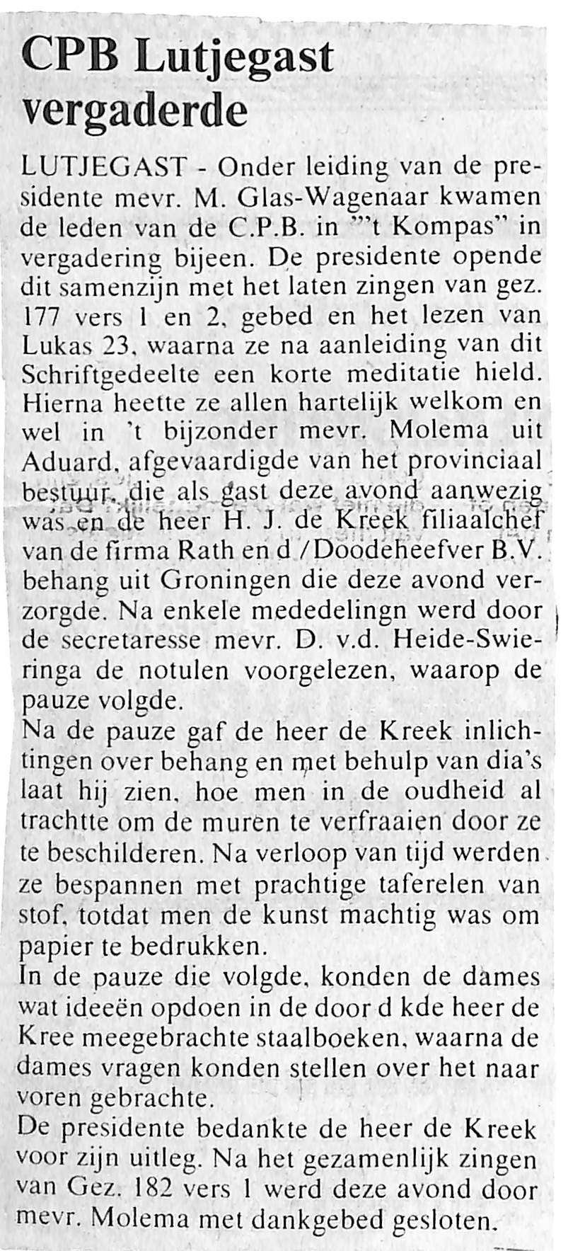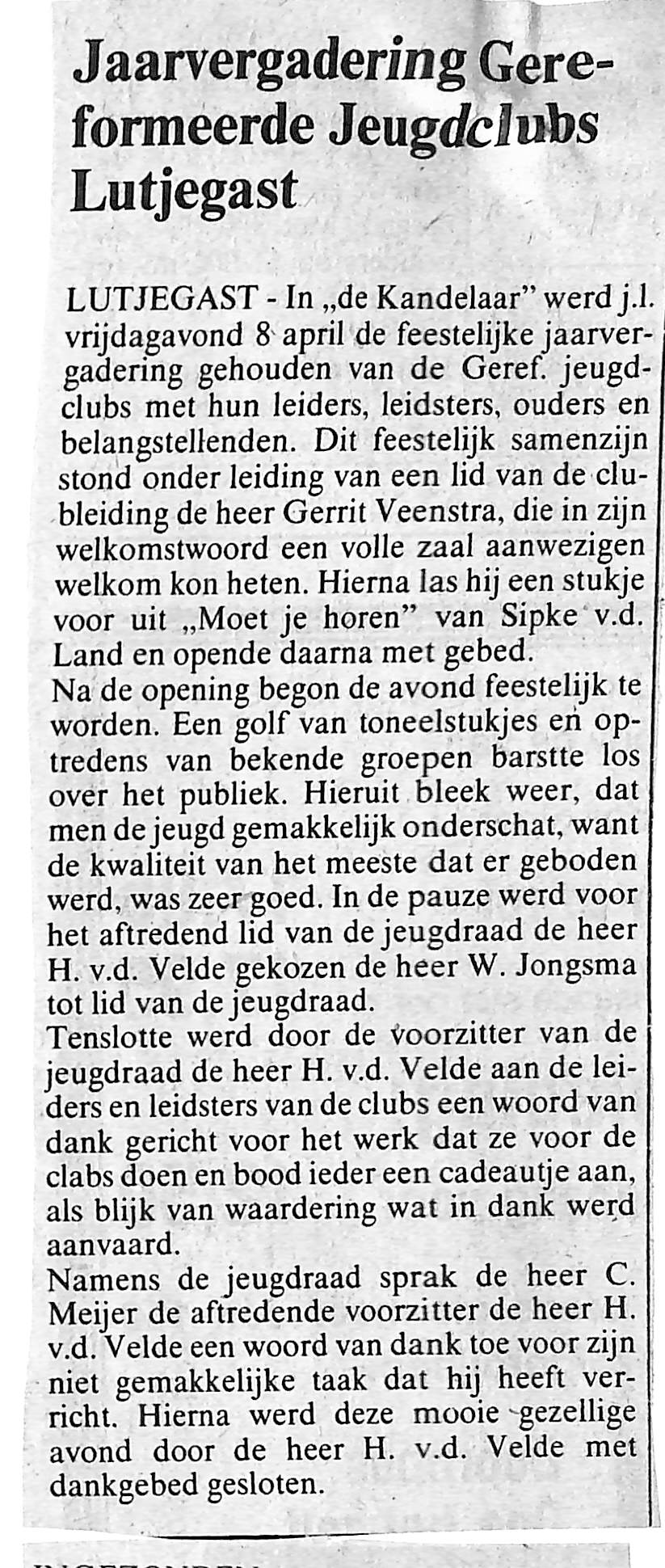 jaarvergadering: M. Glas - Wagenaar, D. v.d. Heide