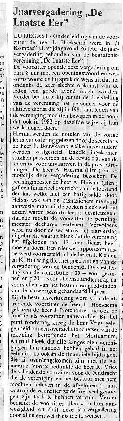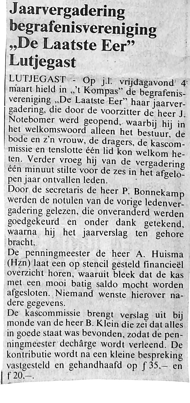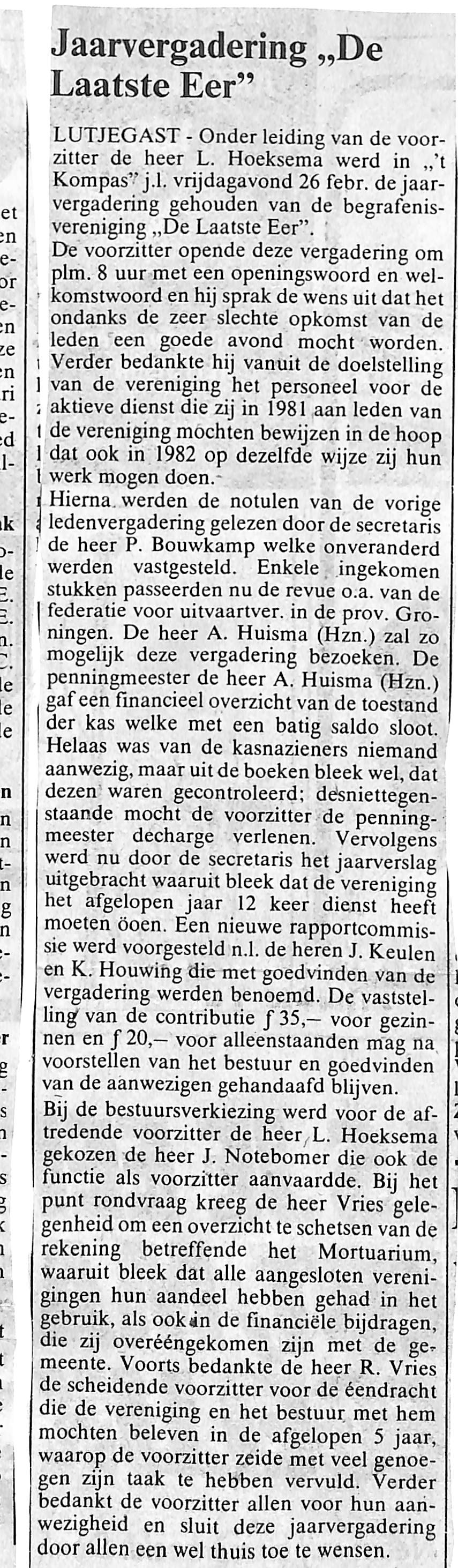 jaarvergadering begrafenisvereniging ,,De laatste eer"; L. Hoeksema, P. Bouwkamp, A. Huisma, J. Keulen, K. Houwing, J. Notebomer, Vries,