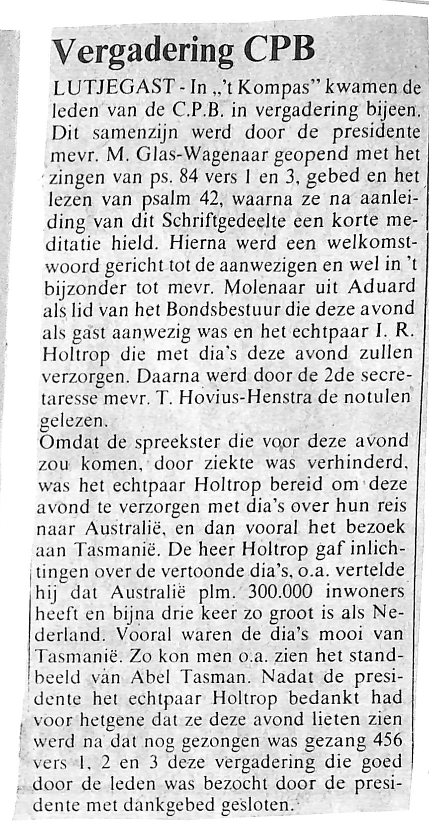 vergadering CPB. M. Glas-Wagenaar, Molenaar, I. R. Holtrop, T. Hovis -Henstra
