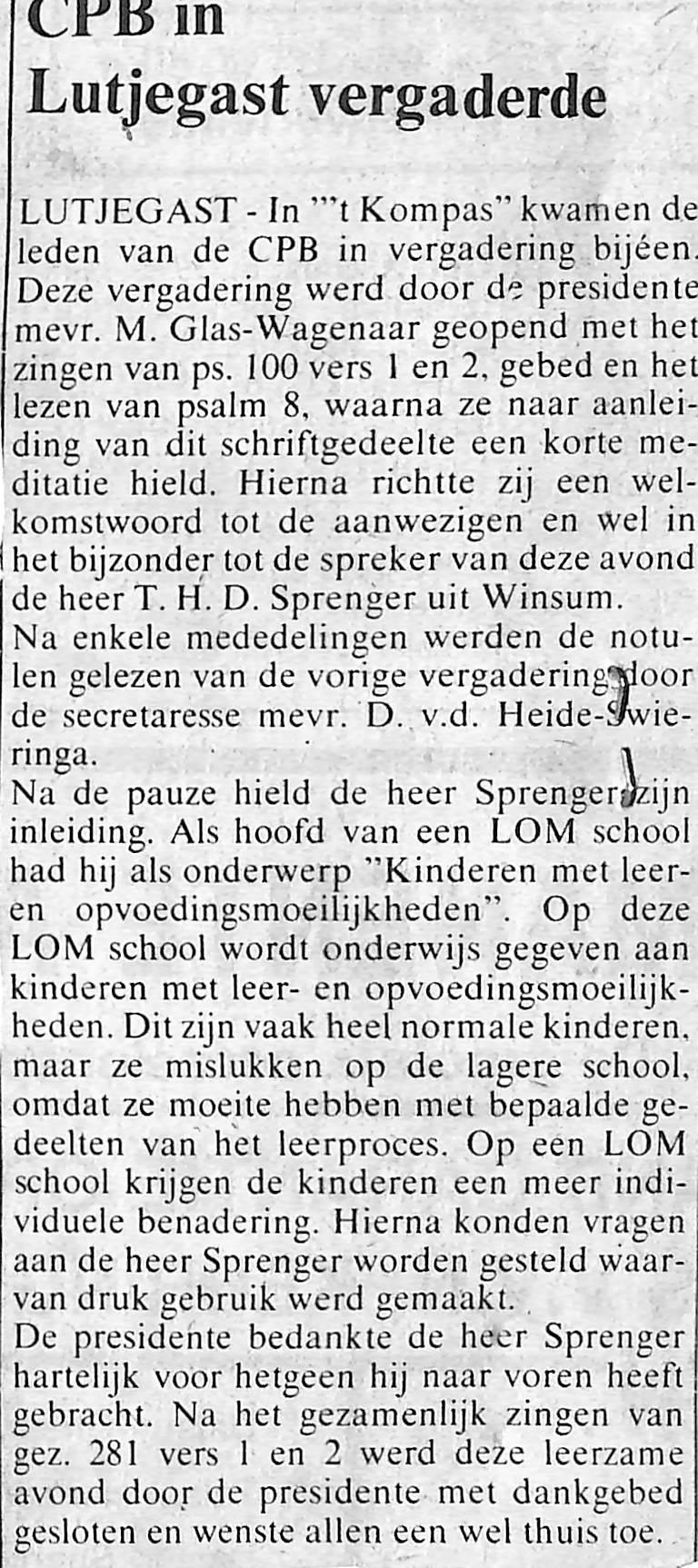 Glas - Wagenaar, Over LOM-school heer Sprenger