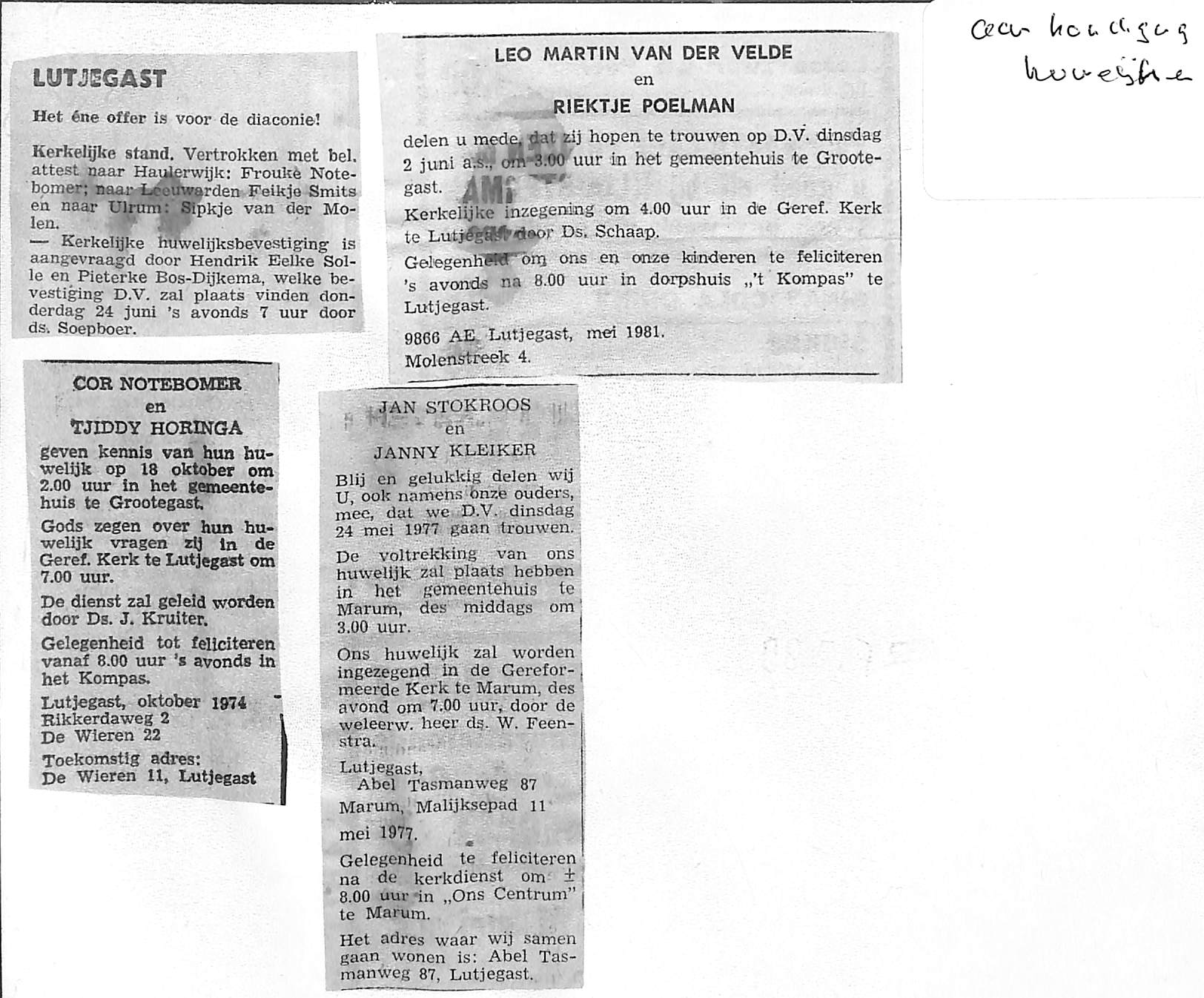 Jan stokroos en Janny Kleiker trouwen op 24 mei 1977