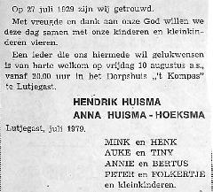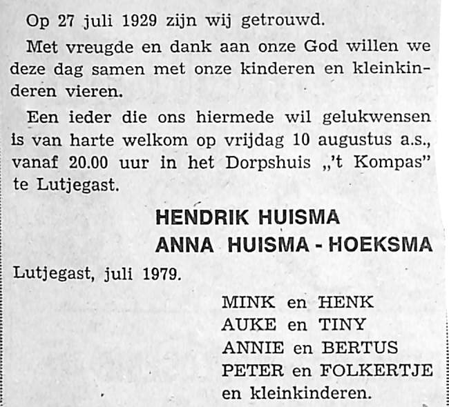 Hendrik Huisma en Anna Hoeksma zijn gehuwd op 27/07/1929