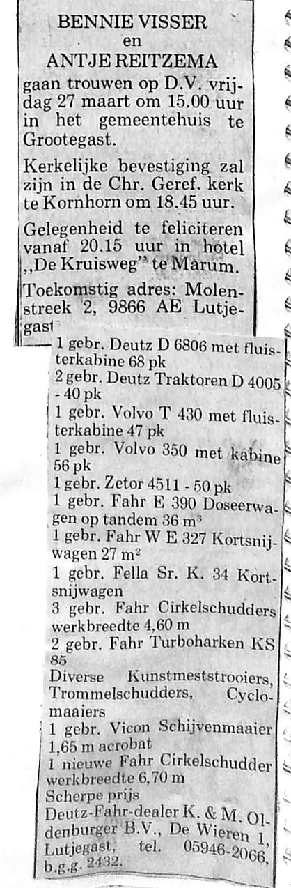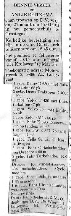 Huwelijk van Bennie Visser en Antje Reitzema op 27-03-1981