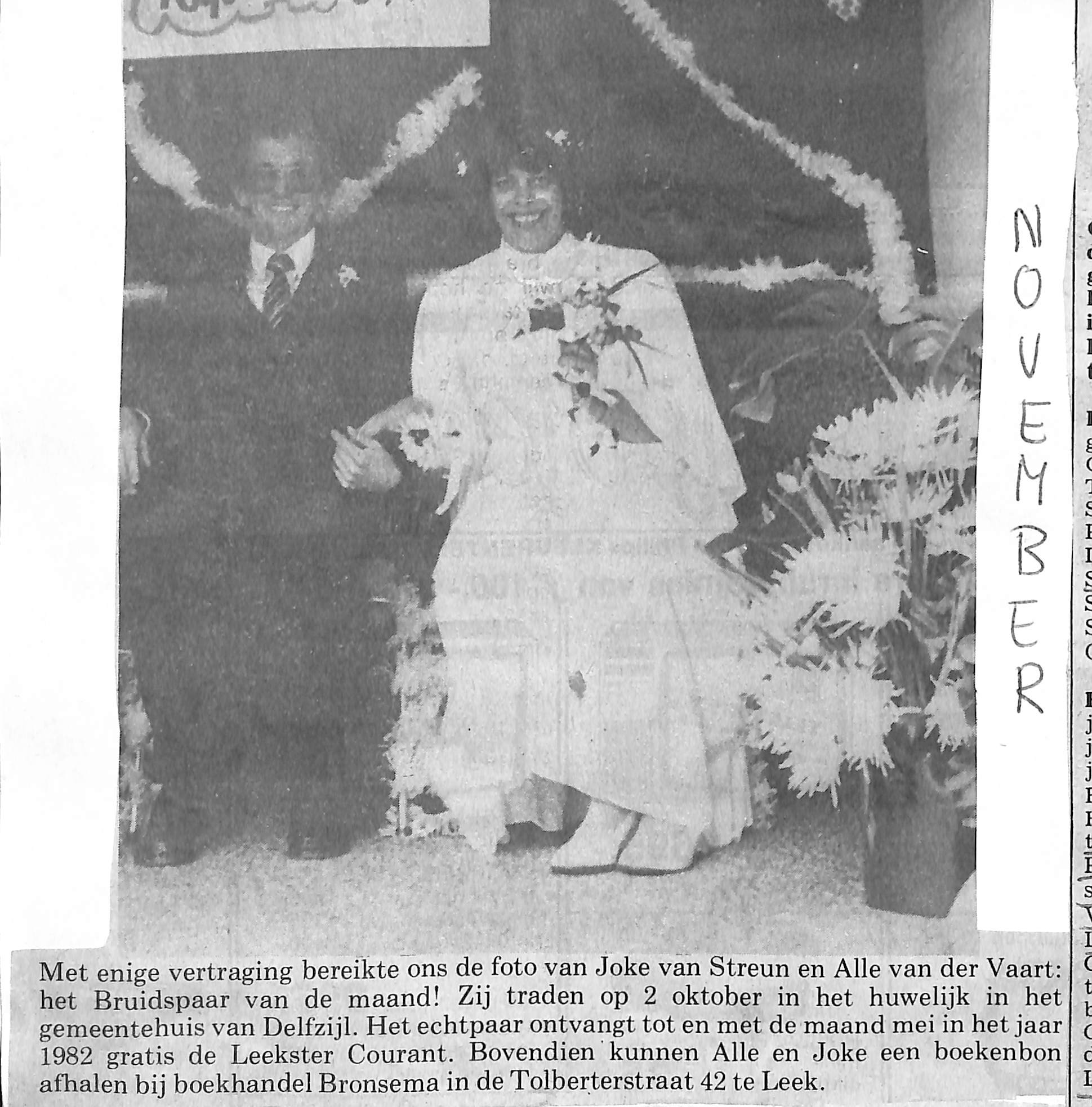 Joke van Streun en Alle van der Vaart gehuwd 02-10-1981