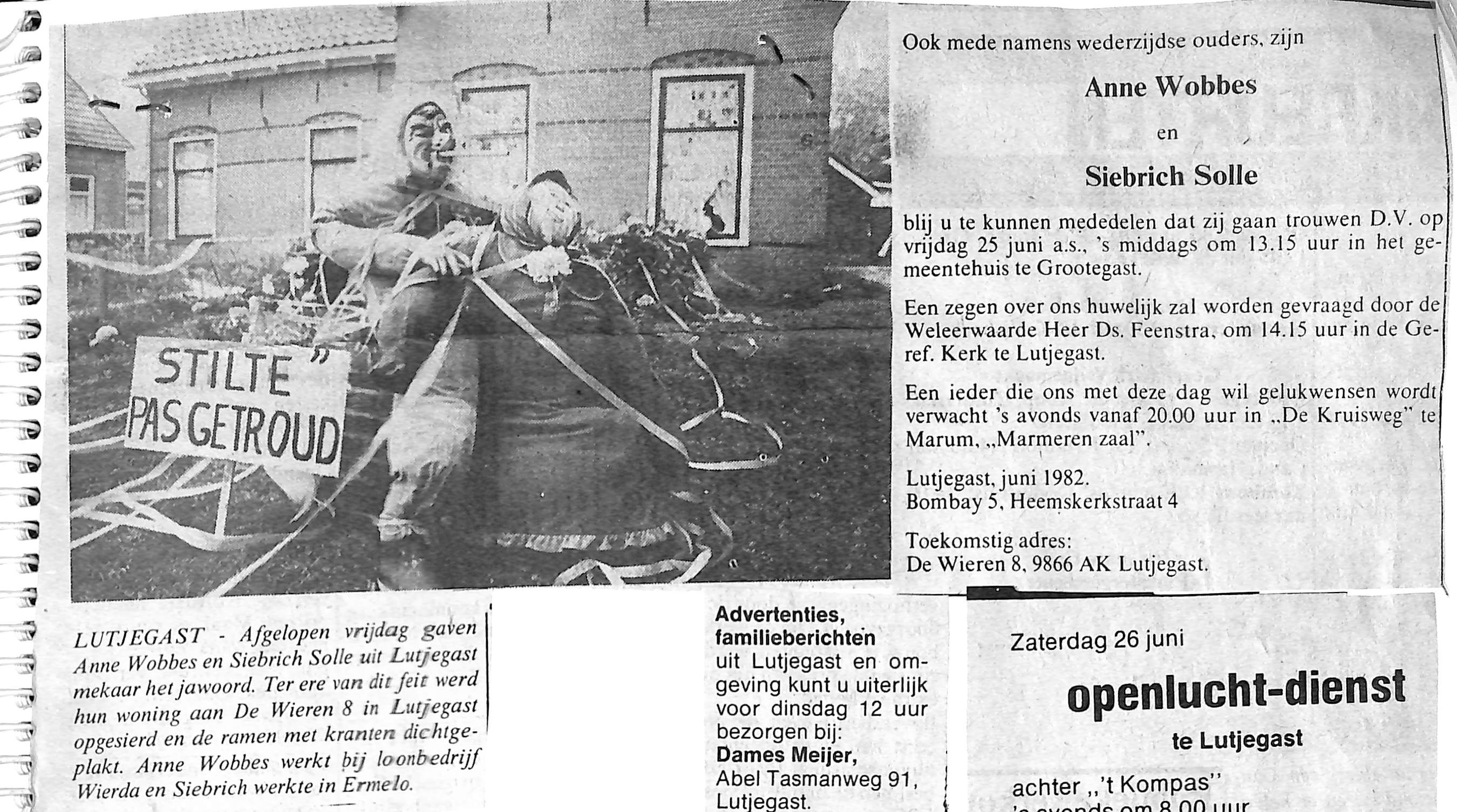Anne Wobbes en Siebrich Solle huwen op 25 juni 1982