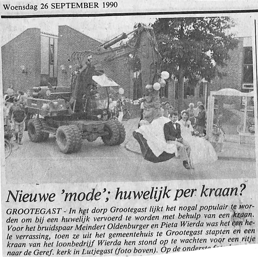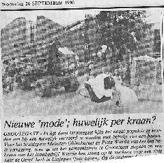 nieuwe mode, huwen per kraan., Meindert Oldenburger en Pieti Wierda