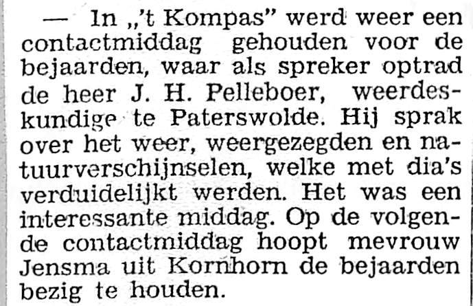 J. H. Pelleboer sprak over het weer en weergezegden en natuurverschijnselen.