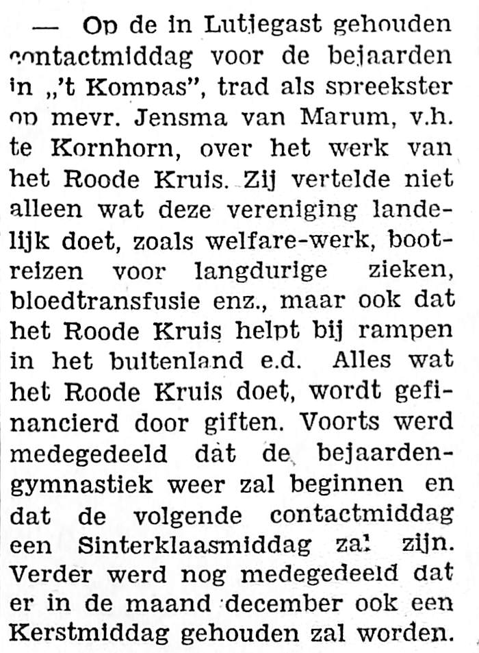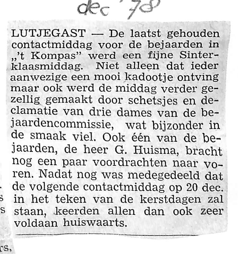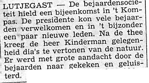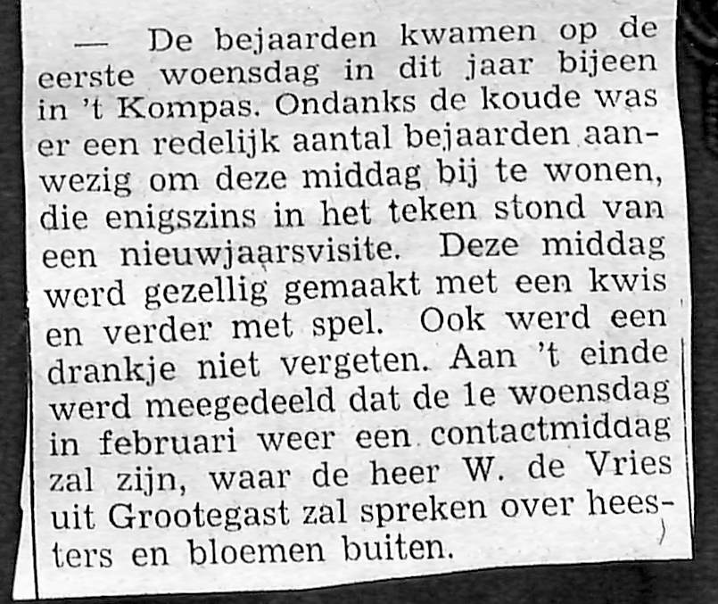 contactmiddag voor bejaarden in ,,'t kompas"