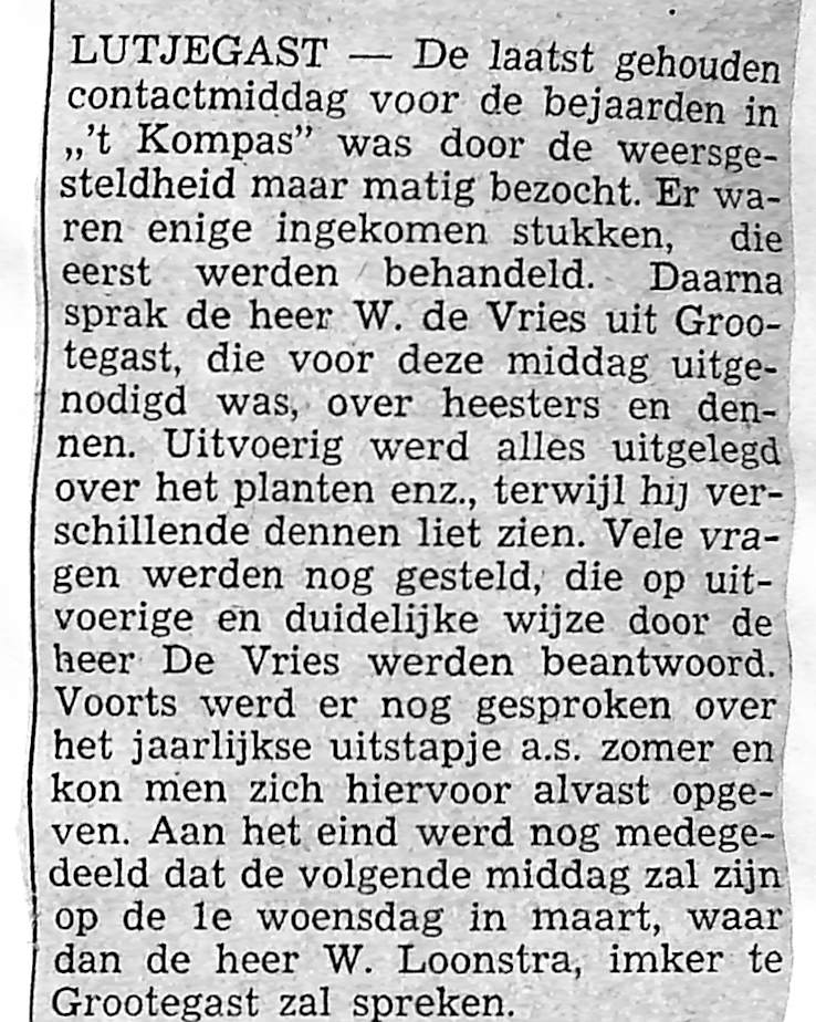 volgende keer spreekt de heer W, de Vries over heesters en bloemen buiten
