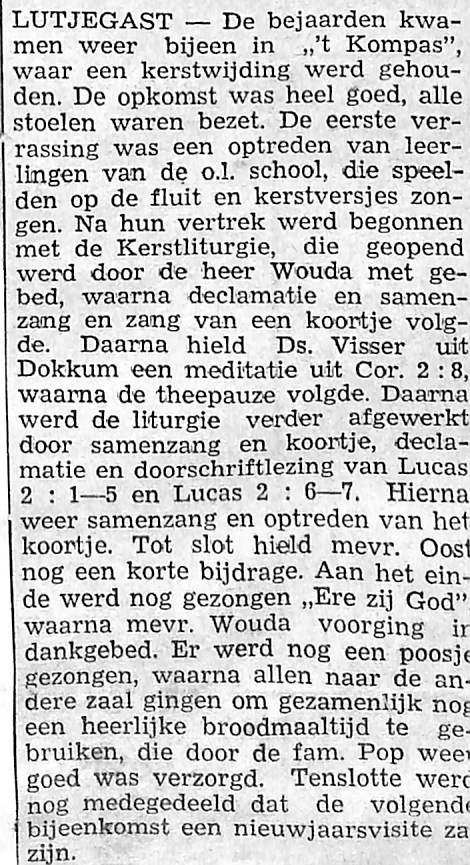kerstwijding voor de bejaarden; Wouda, Visser, Oost, Pop