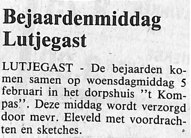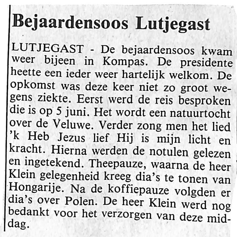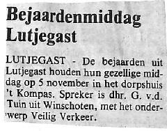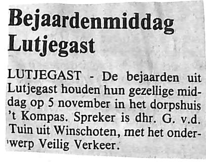 bejaardensoos in 't Kompas met de spreker G. v/d Tuin onderwerp veilig verkeer