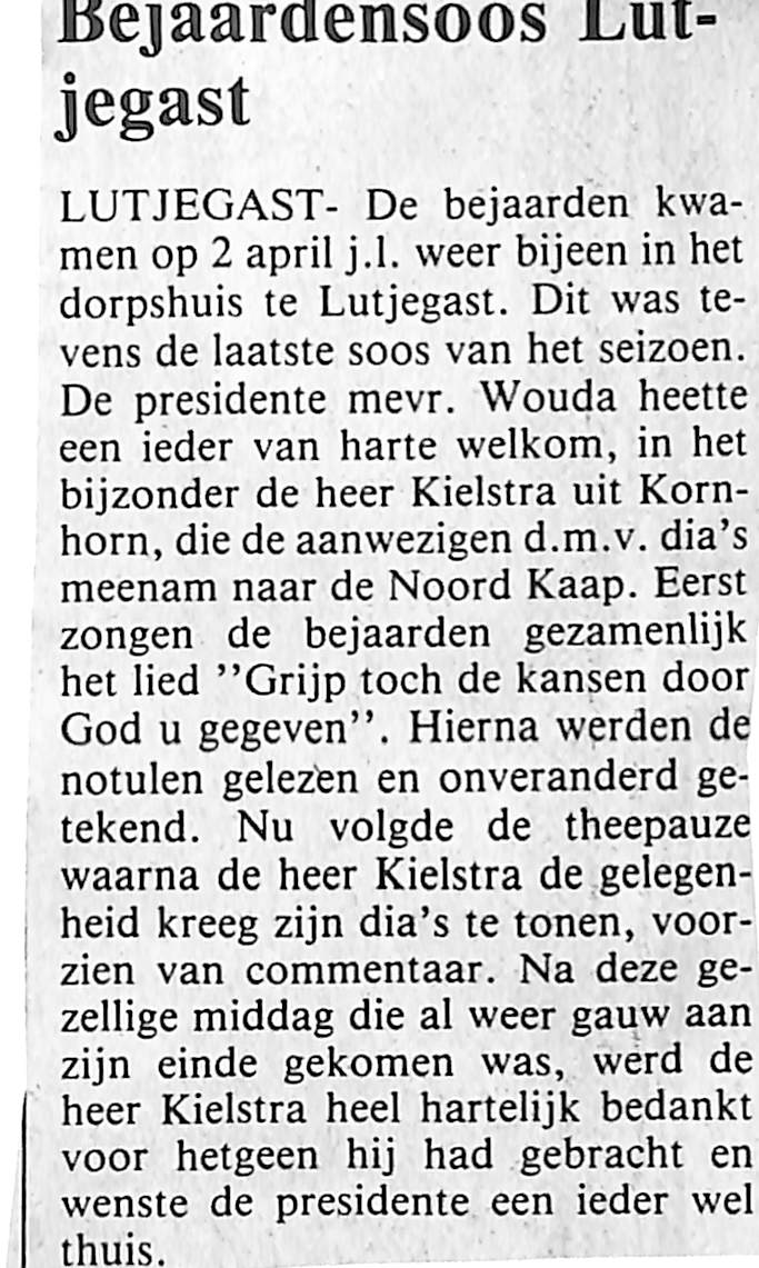 laatste bejaardensoos van het seizoen; Wouda, Kielstra