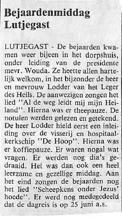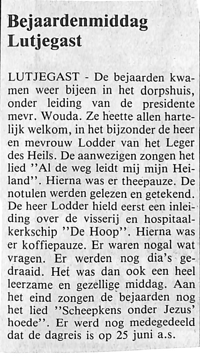 Wouda, Lodder met lezing over hospitaalkerkschip De Hoop van Leger des Heils.