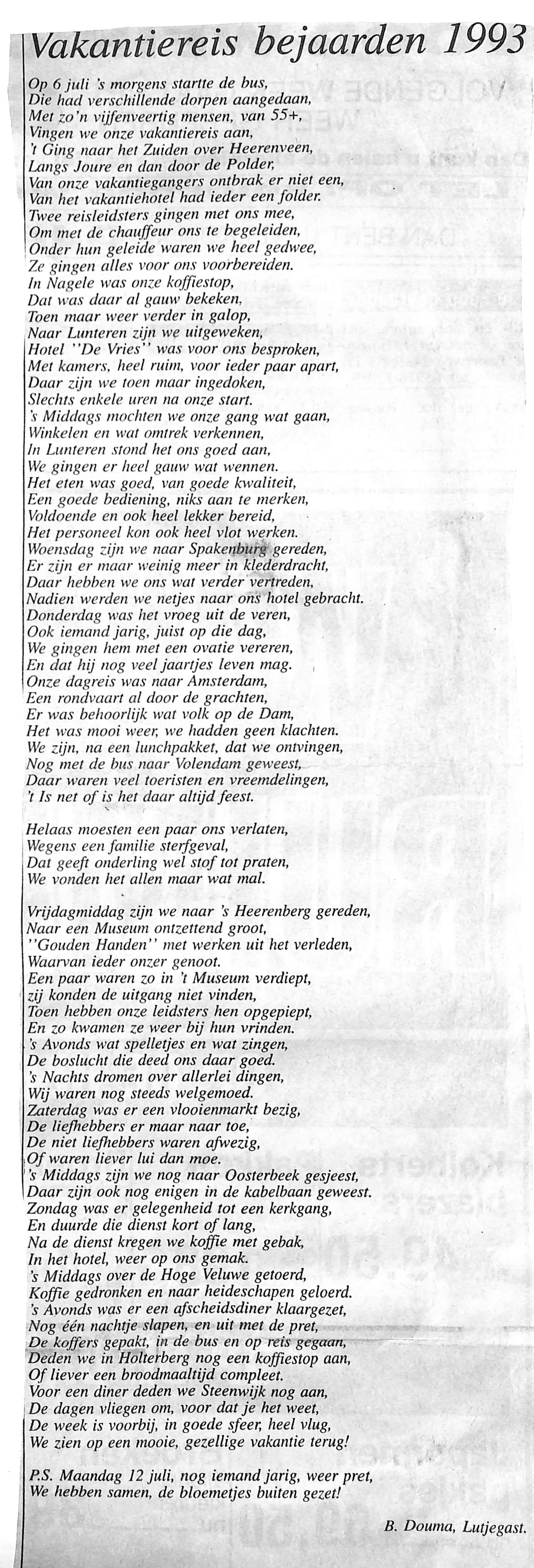 Gedicht over bejaardenreis in 1993 door B. Douma