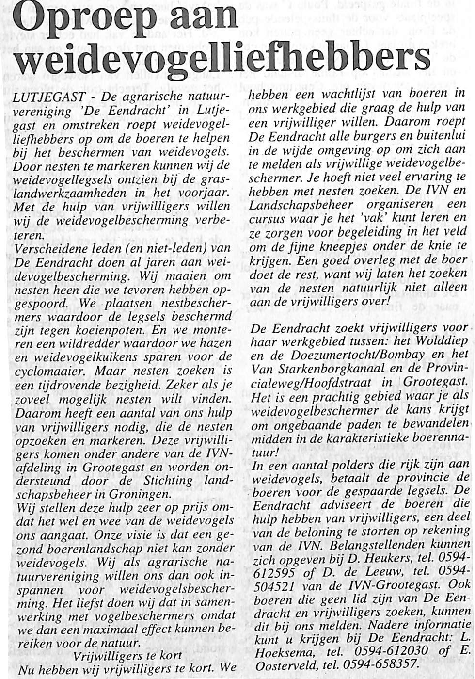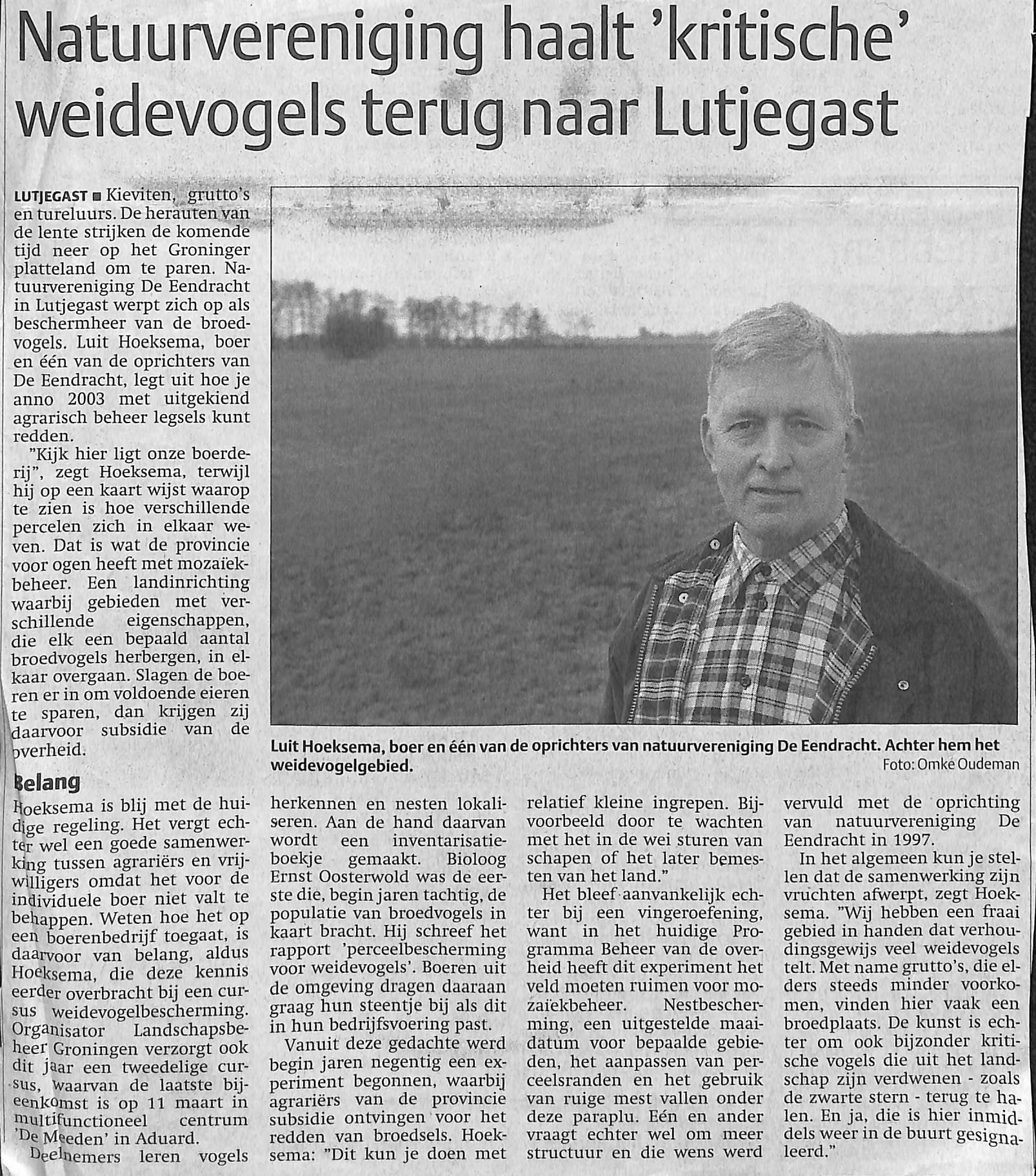 Natuurvereniging De Eendracht haalt kritische weidevogels terug naar Lutjegast.