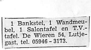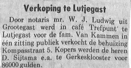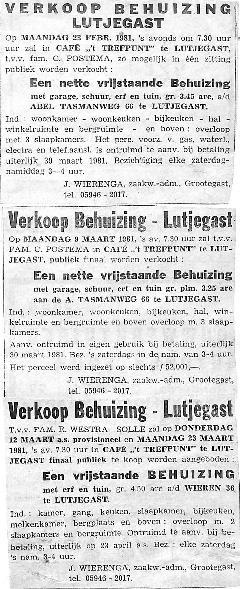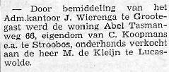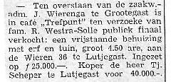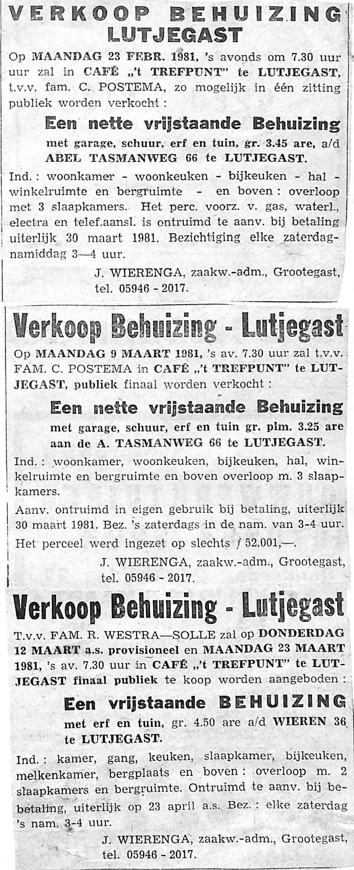 verkoop huis van de fam. C. Postema; J. Wierenga