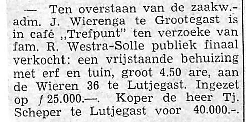 verkoop huis; J. Wierenga, R. Westra-Solle, T. J. Scheper