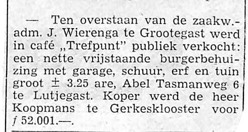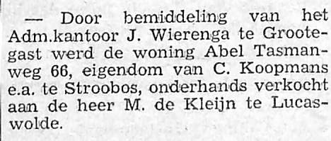 verkoping huis; J. Wierenga, C. Koopmans, M de Kleijn